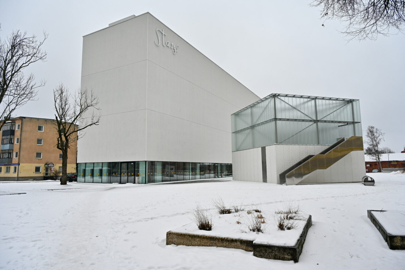 Būsimasis muziejus prisistato vardu „Stasys“, iš tolo matomu ant pastato fasado.