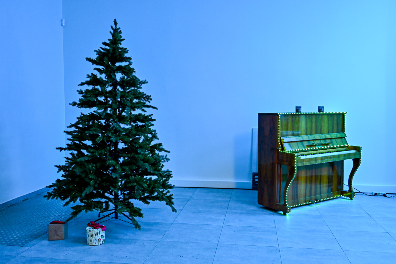 LED šviesų nutviekstas pianinas yra pastato šeimininkų – Šaulių sąjungos nuosavybė. Jis – grojantis, tačiau reikalingas suderinimo.