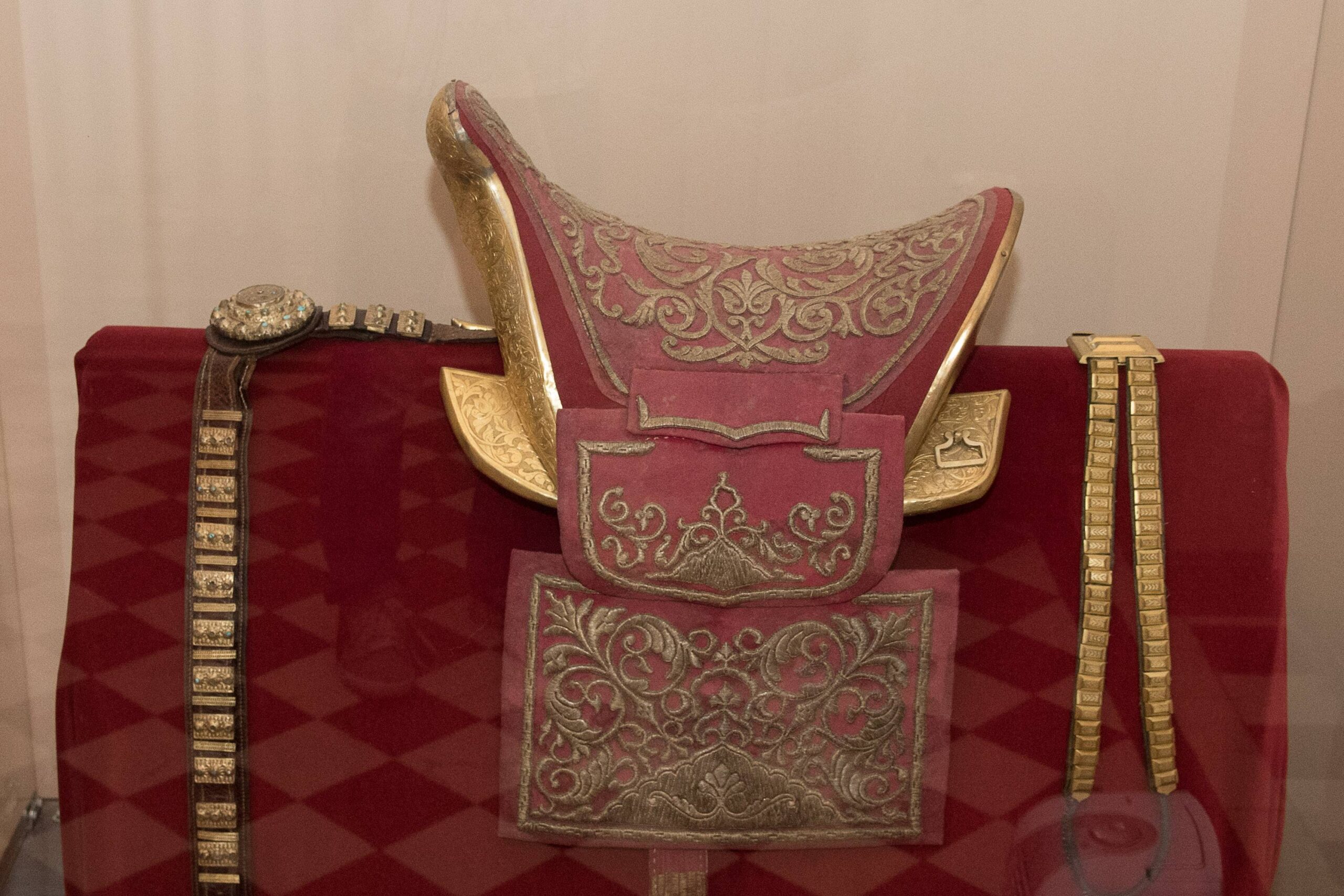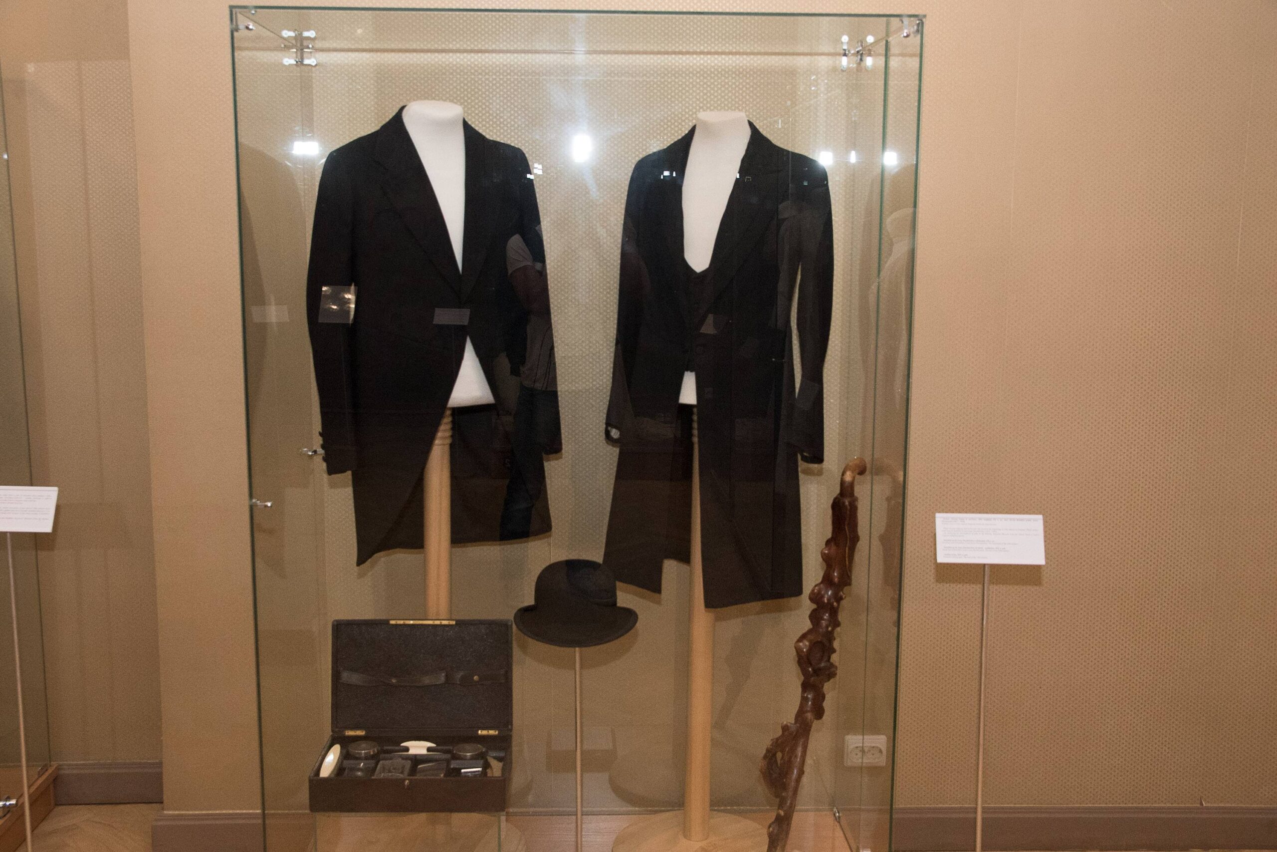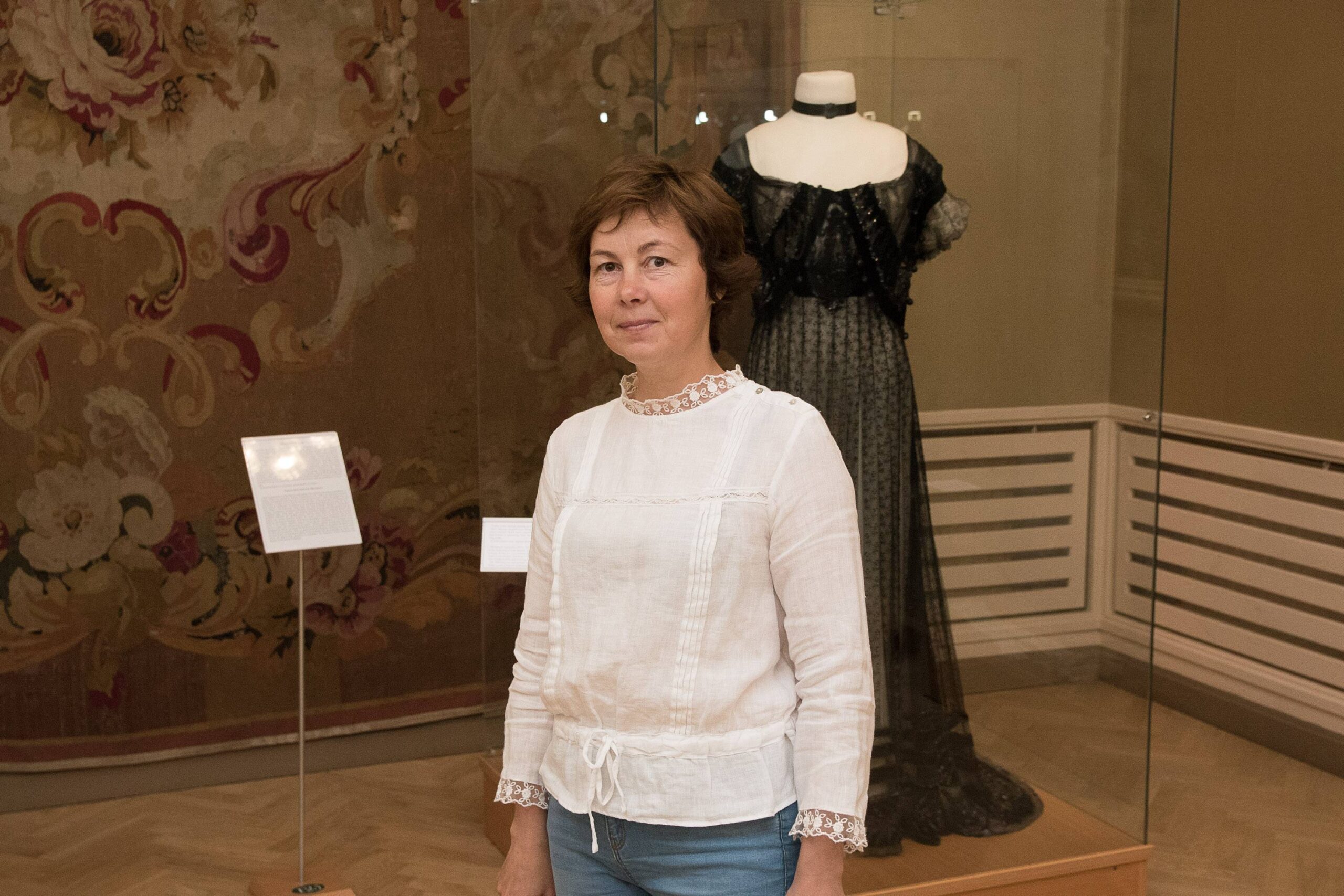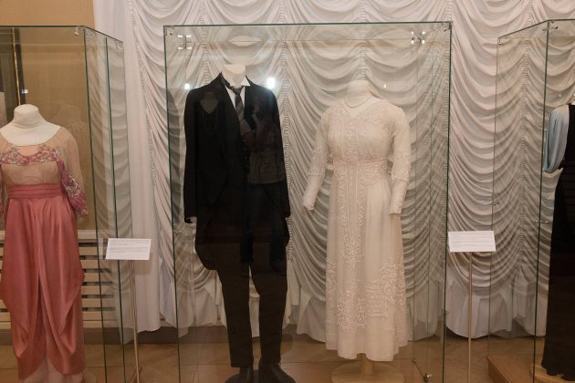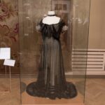 Po stikliniais gaubtais – kelios autentiškos grafienės H. Pšezdzieckienės ir panelių grafaičių suknios, jodinėjimo kostiumai, puošnūs grafo apdarai.