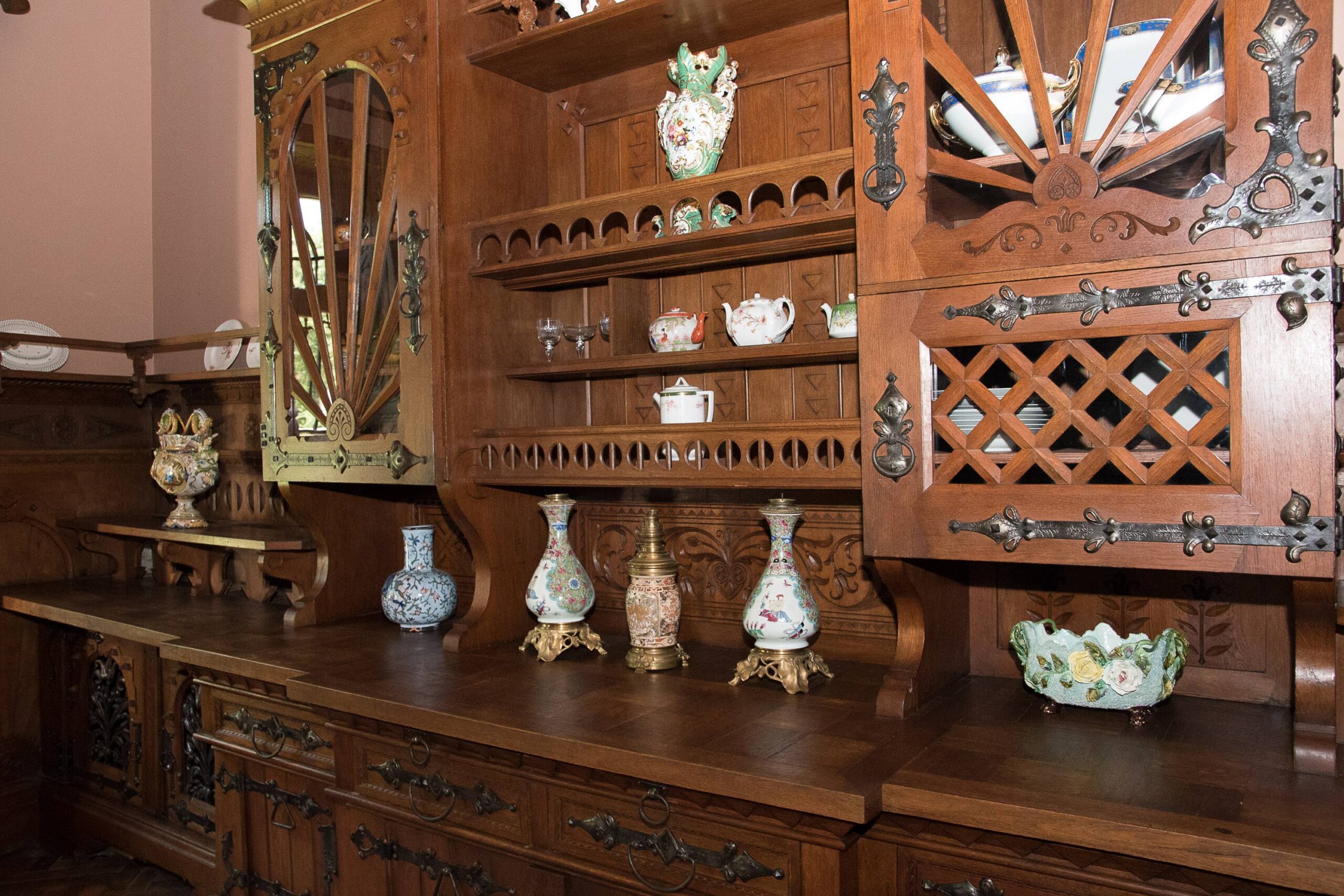 Valgomajame, kuriame išlikę autentiški baldai, senajame bufete dar galima pamatyti lėkštes, iš kurių buvo valgoma per šventes. Tas lėkštes, kaip ir kitus karališkojo porceliano indus, į Rokiškį atsivežė grafienė.