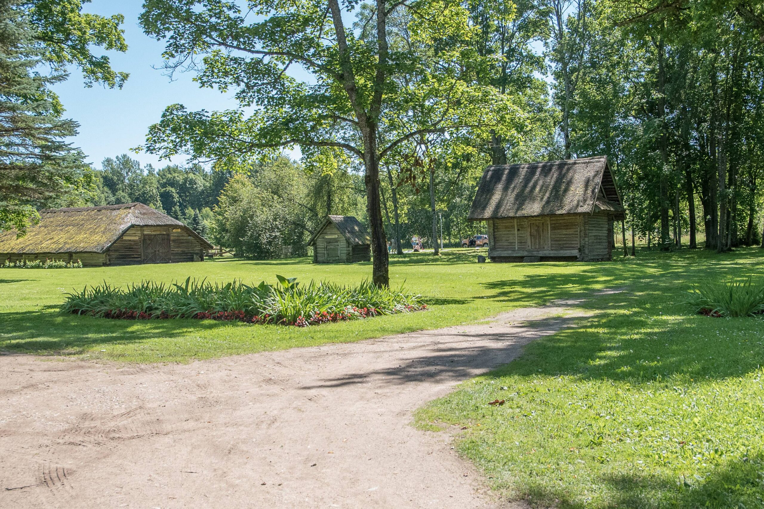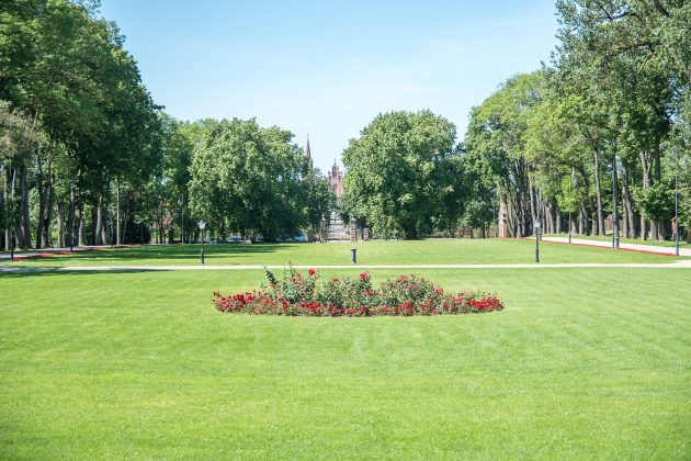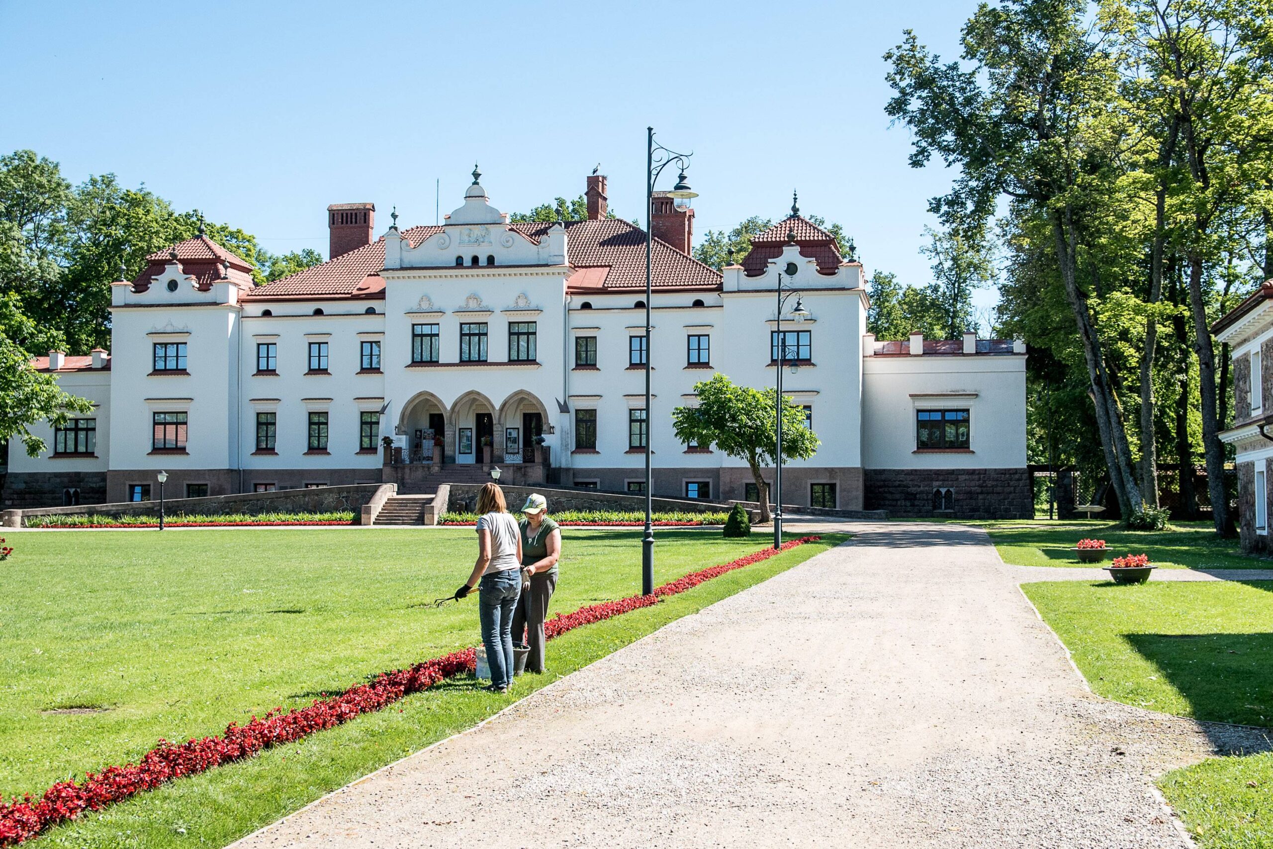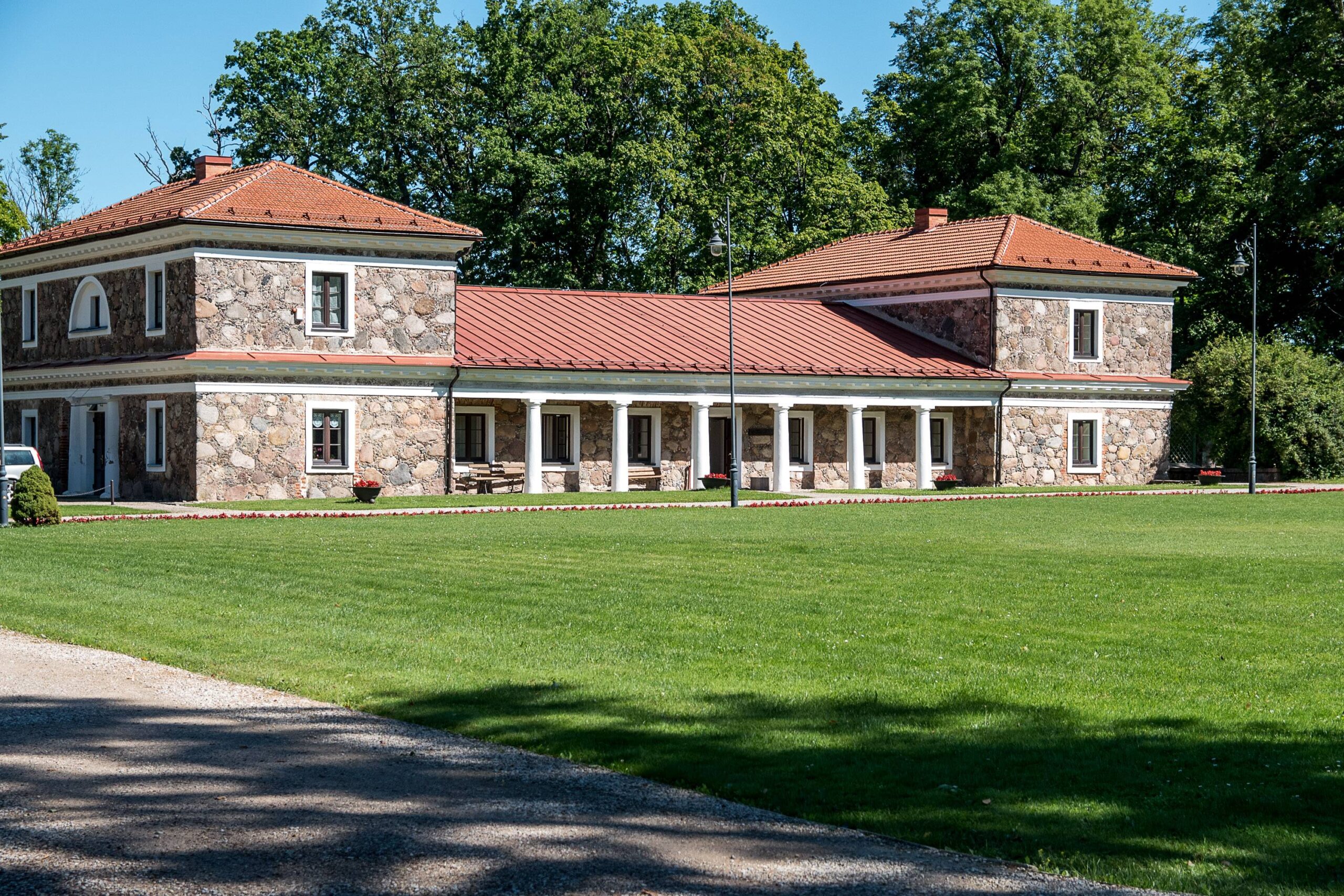 Palikus automobilį aikštelėje pagrindinio pastato link einama parku – alėjos taku pro žalią veją, gėlynus. Sakoma, kad toje vietoje, kur dabar pagrindinė veja, anksčiau taip pat buvo didžiuliai gėlynai.
