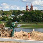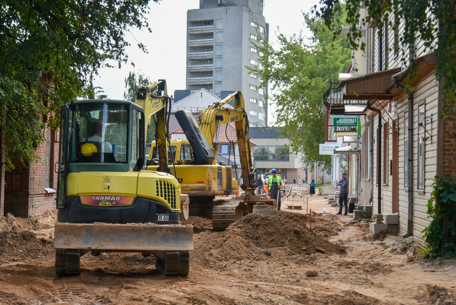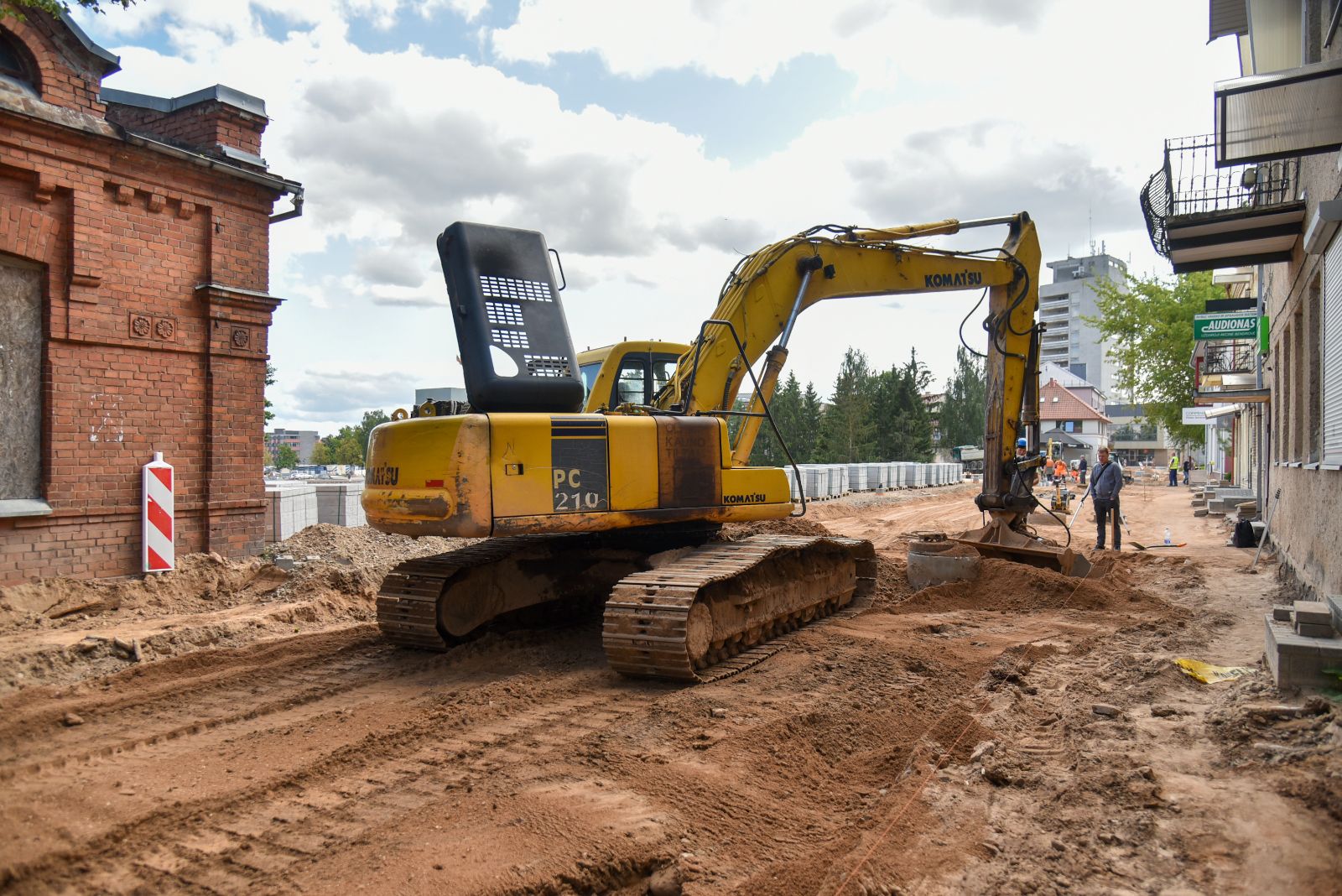 Pirmuoju etapu jau ištirta Vasario 16-osios gatvės pusė toliau rekonstruojama. Kita kelio pusė, kur dar dirbs archeologai, kelininkų turės palaukti.
