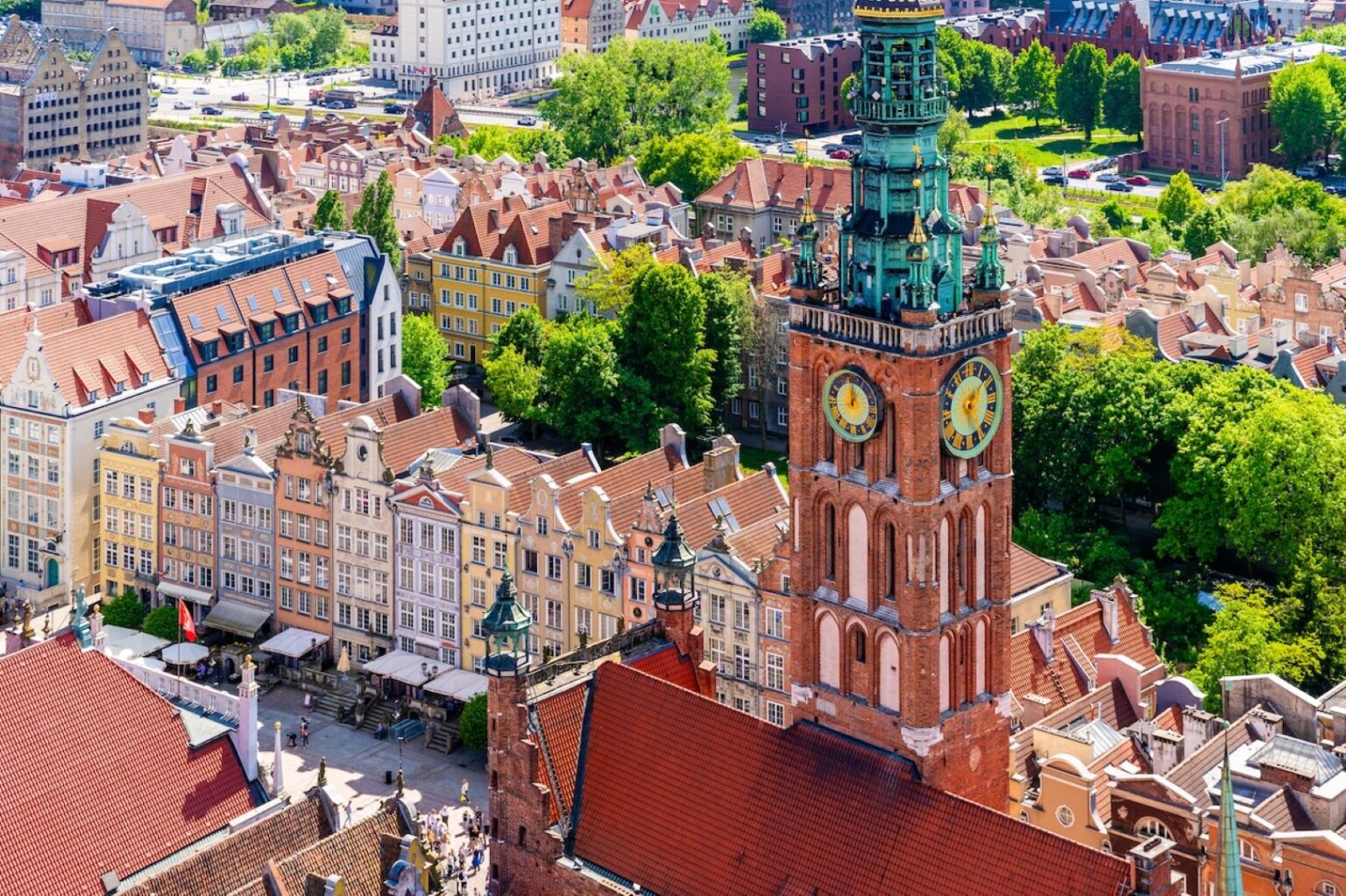 Gdanskas žavi ne tik vaikštant jo gatvėmis – tikrasis miesto grožis atsiskleidžia pakilus aukščiau. Raudonų stogų jūra, siaurų gatvelių tinklas ir tarp jų vingiuojanti upė sukuria ilgam į atmintį įstringantį vaizdą.