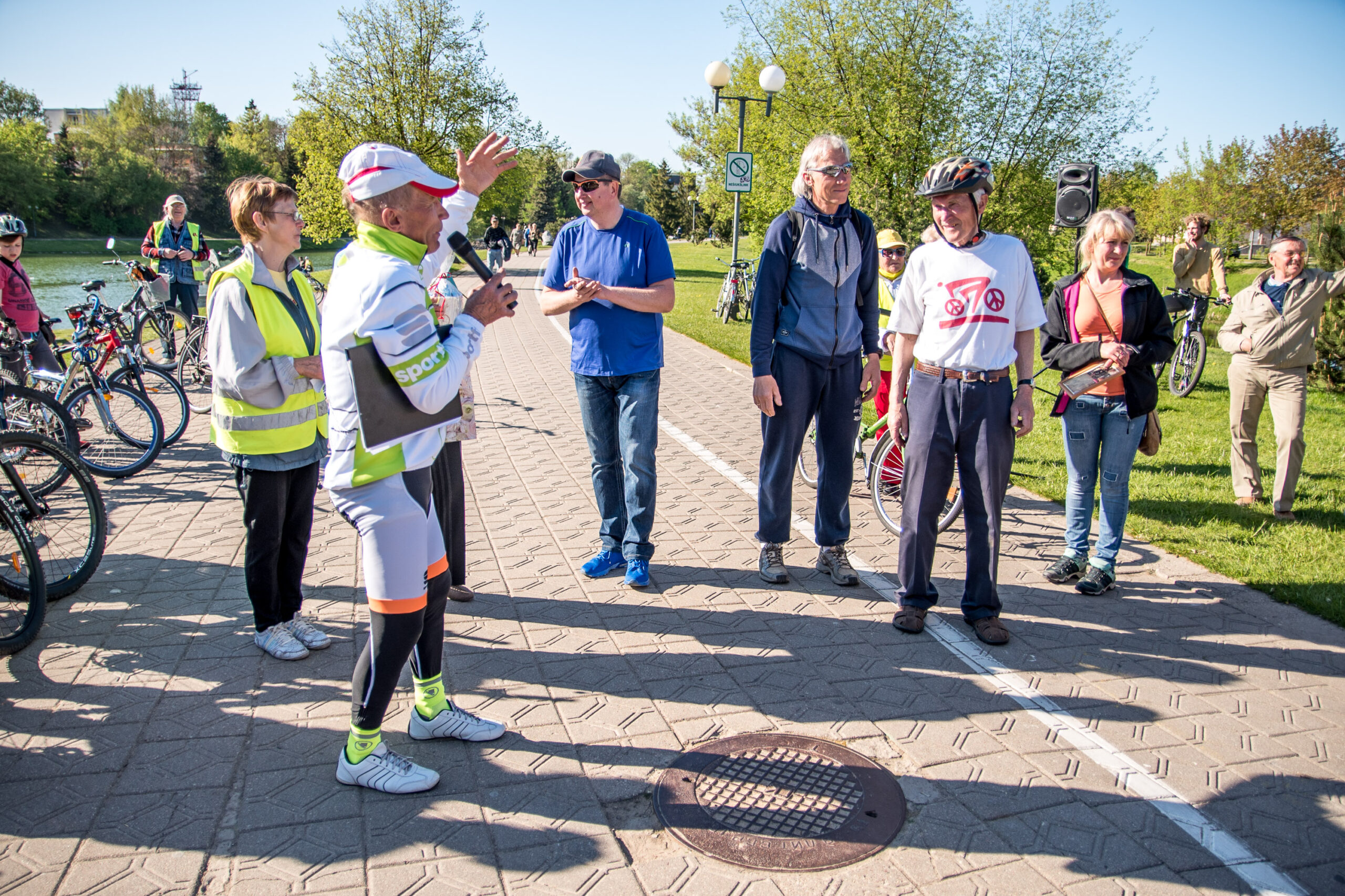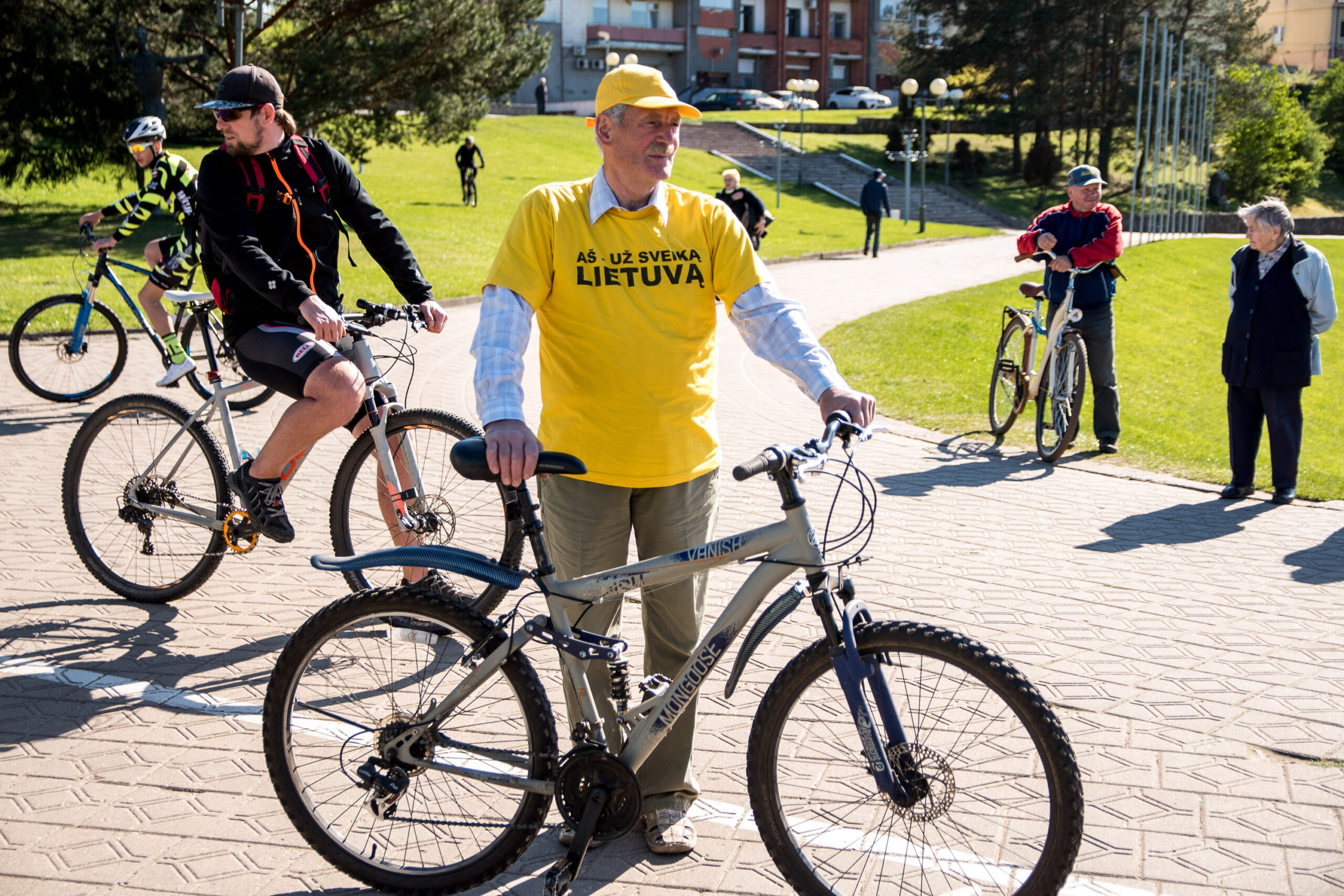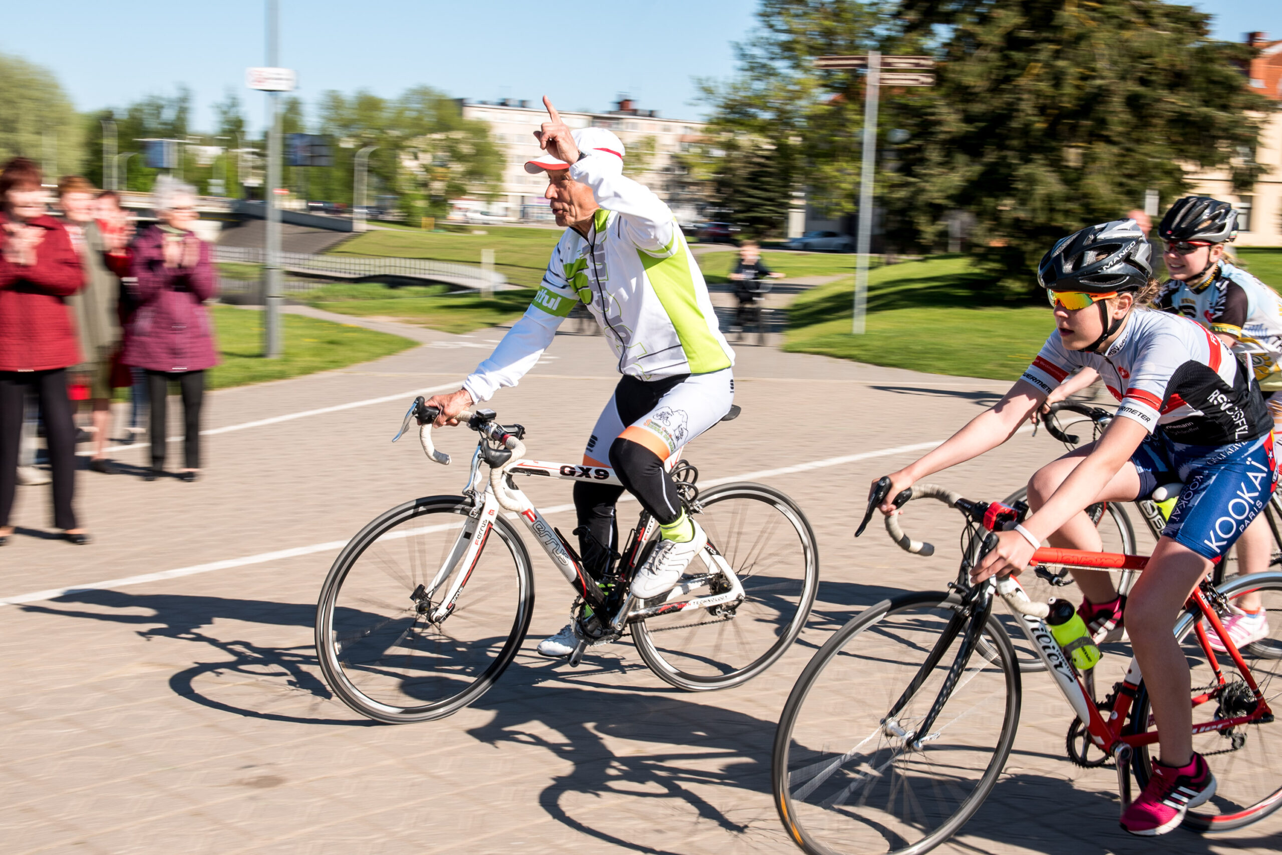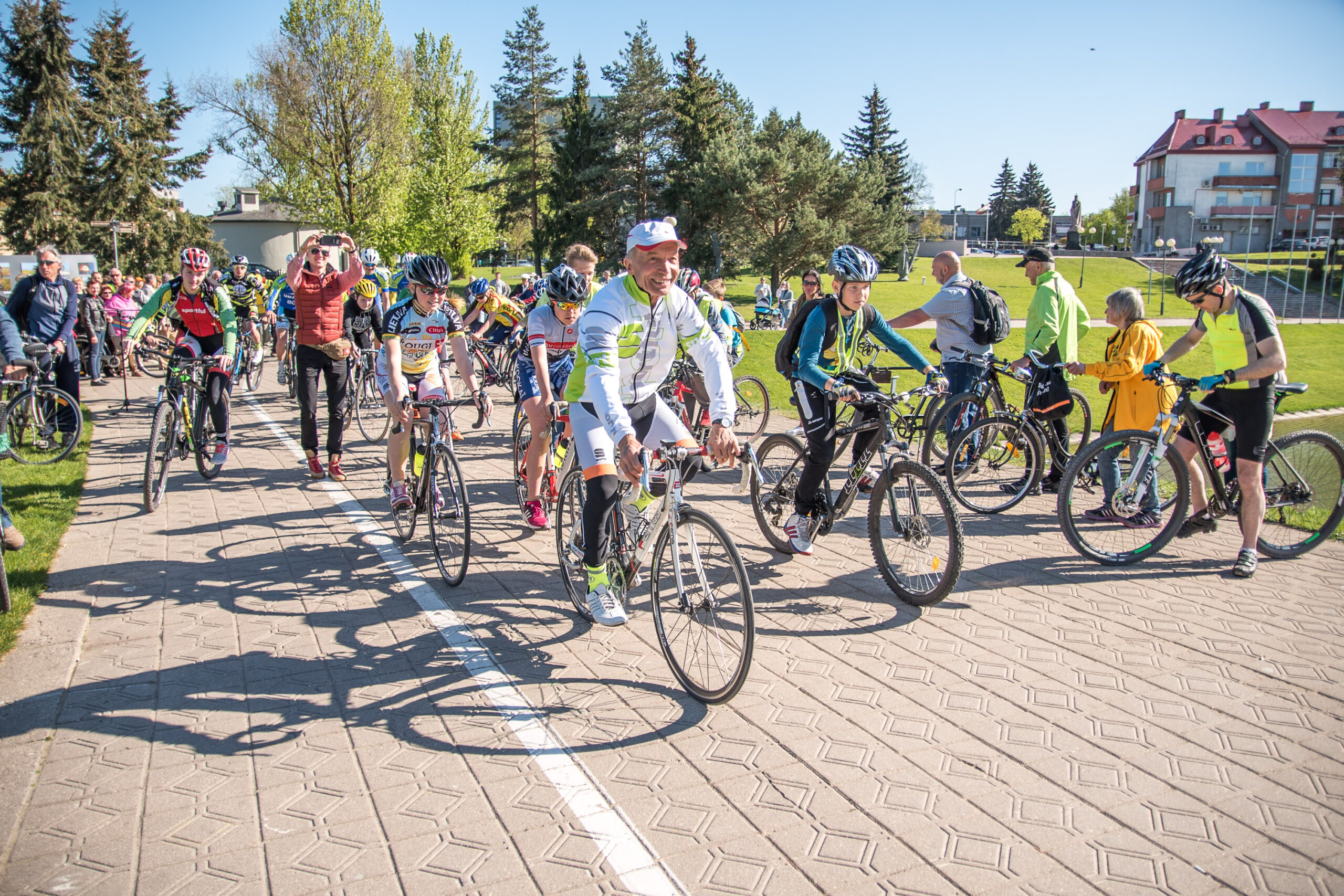 Gausių susirinkusiųjų plojimų ir dėmesio sulaukė tie senjorai, kurie, į pirmąsias gretas užleidę jaunimą, mėgavosi geru oru ir neskubėdami suko ratus. Netrumpą dviratininkų koloną į priekį vedė energingasis K. Ilginis.