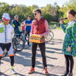 Į susitikimą atvažiavę senjorai ir jaunieji dviratininkai aplink Senvagę apsuko tris ratus: už Lietuvą, jos žmones ir Panevėžio dviratininkus.