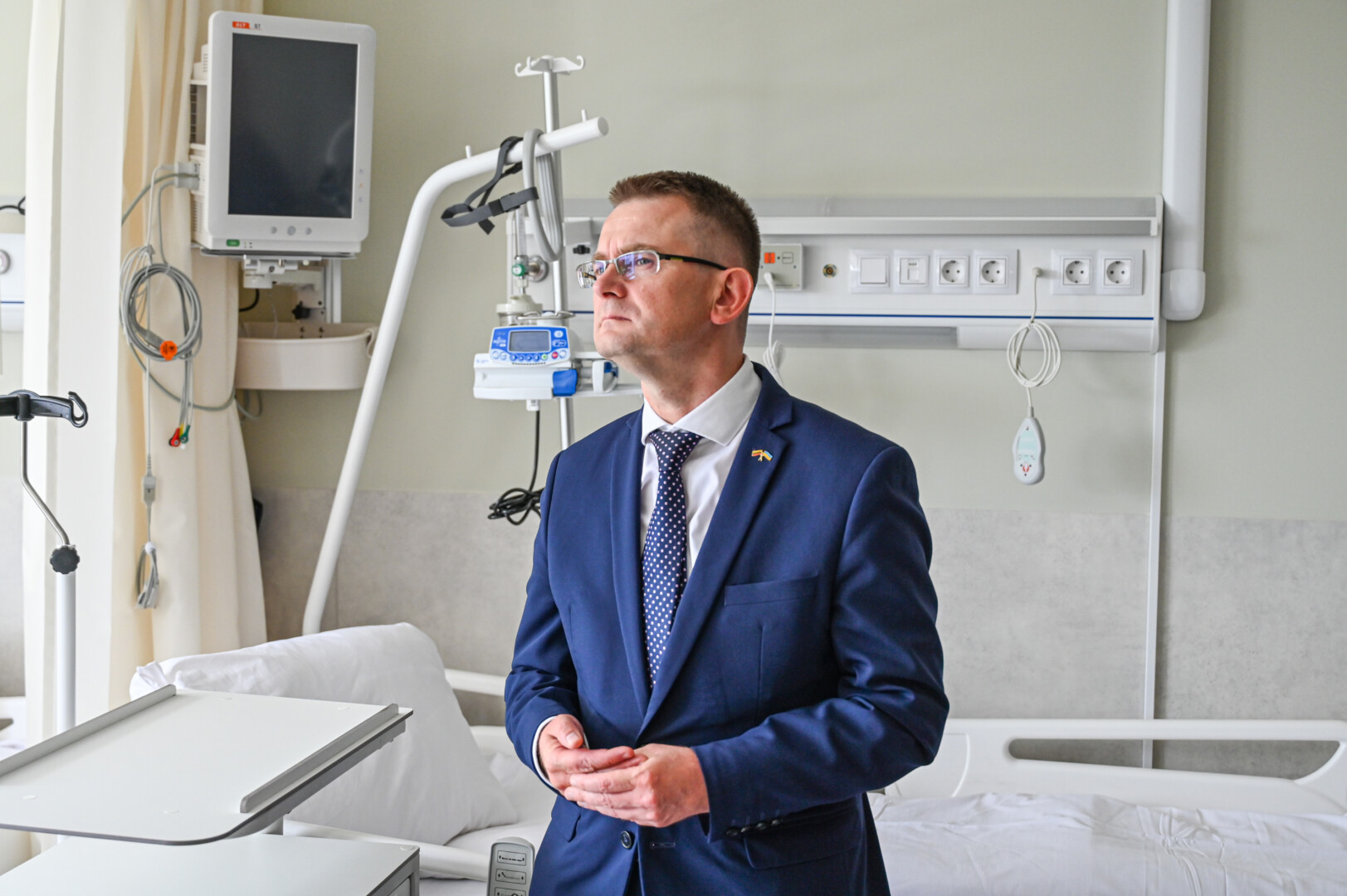Panevėžio ligoninės Geriatrijos skyriuje ministrą sužavėjo ir įranga, lengvinanti senjorų priežiūrą bei jų gydymą, ir skyriaus estetika.