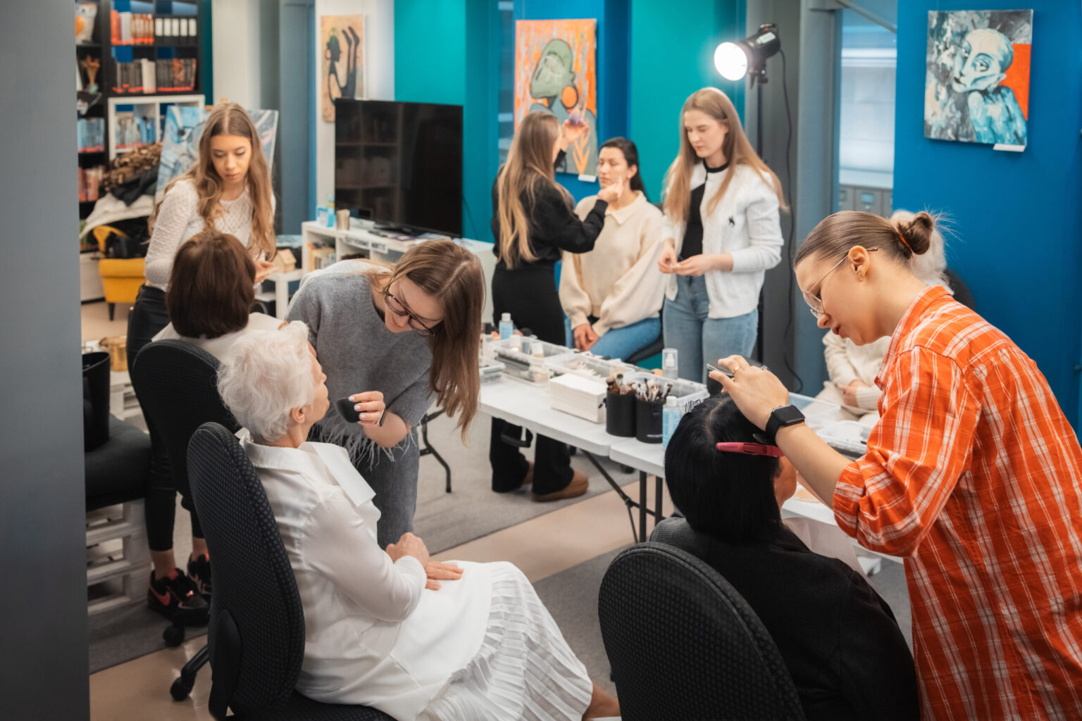 Taip dvi specialybės mokytojos su savo studentėmis nėrė į savotišką avantiūrą – bibliotekoje kelioms valandoms atidarė senjorių grožio saloną.