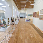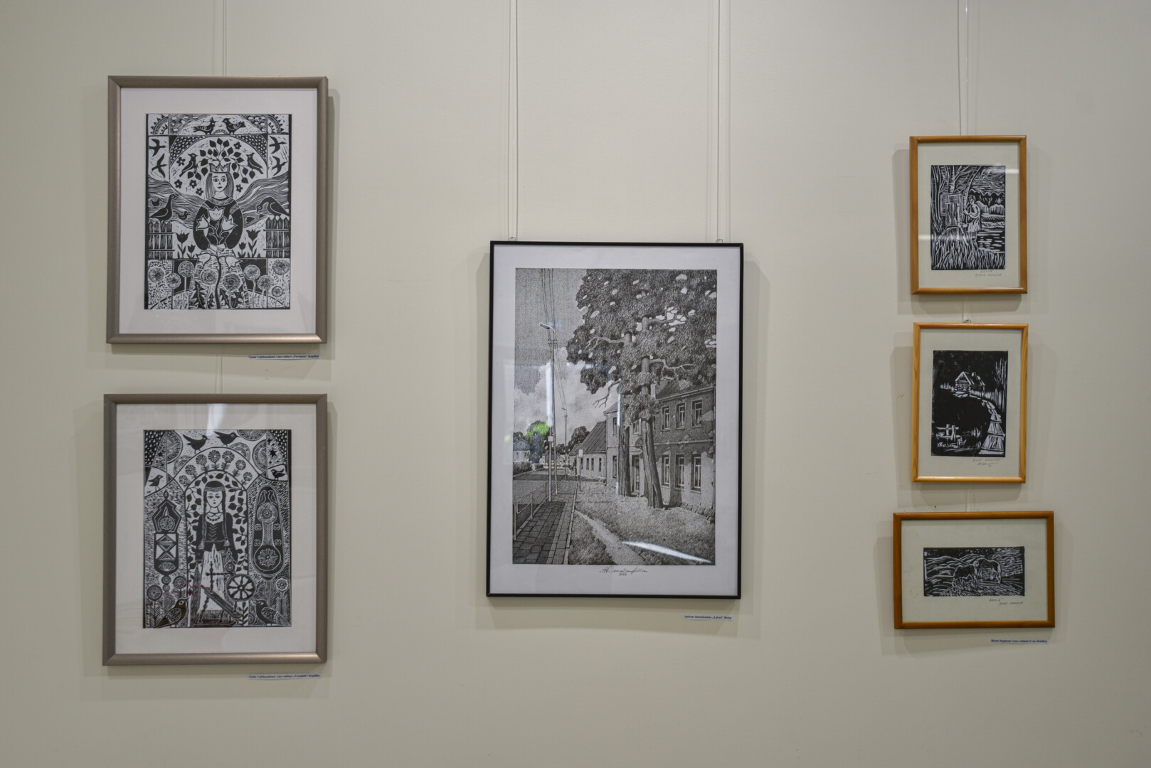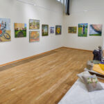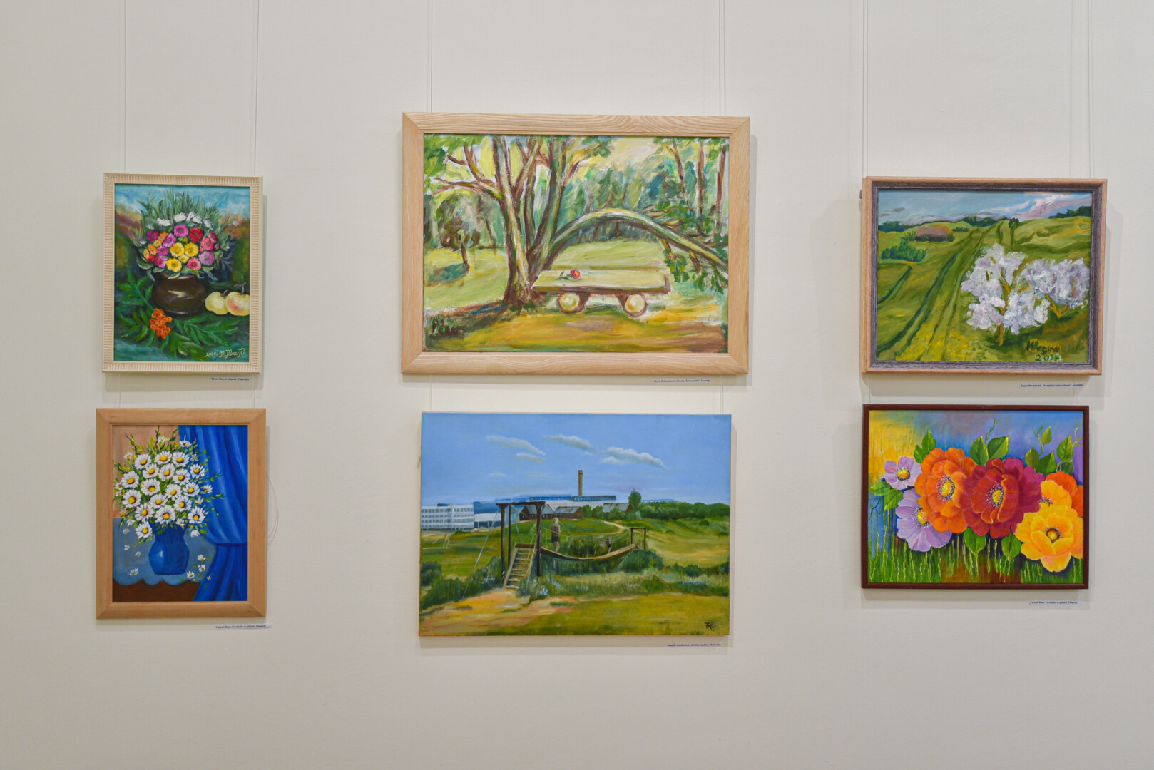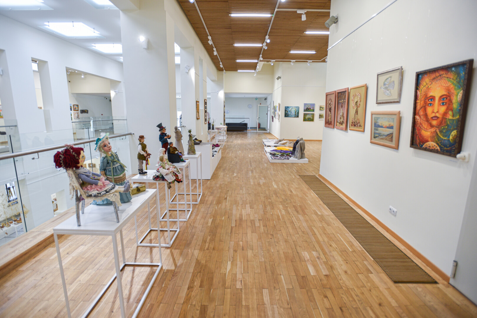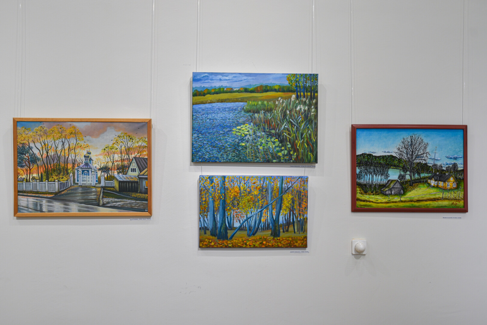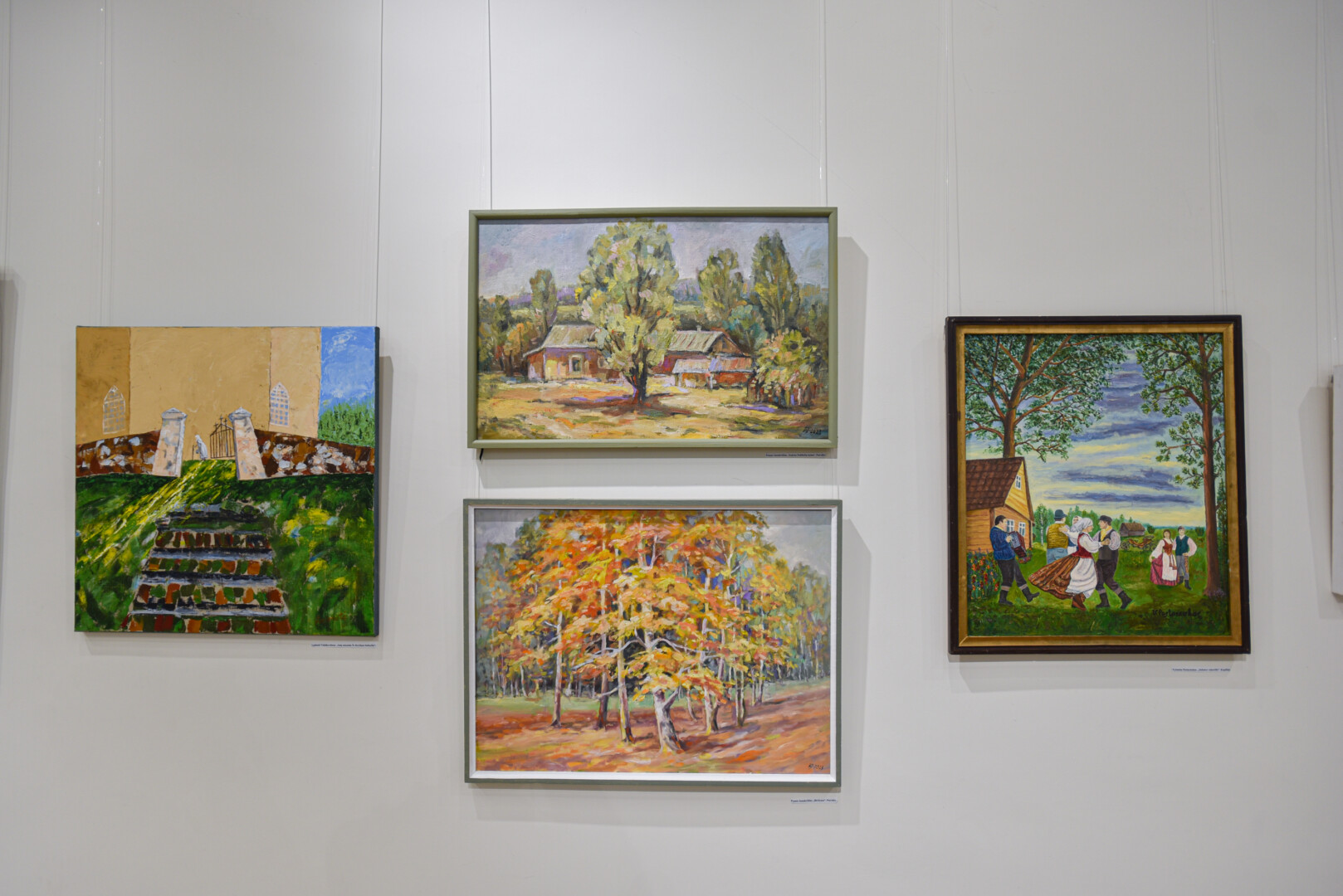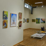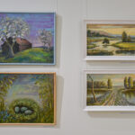 Krašto tautodailės parodoje ant sienų kaba peizažai, natiurmortai, kiti dailės darbai.