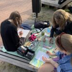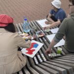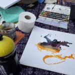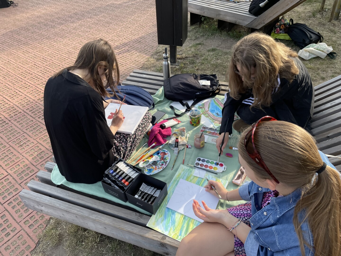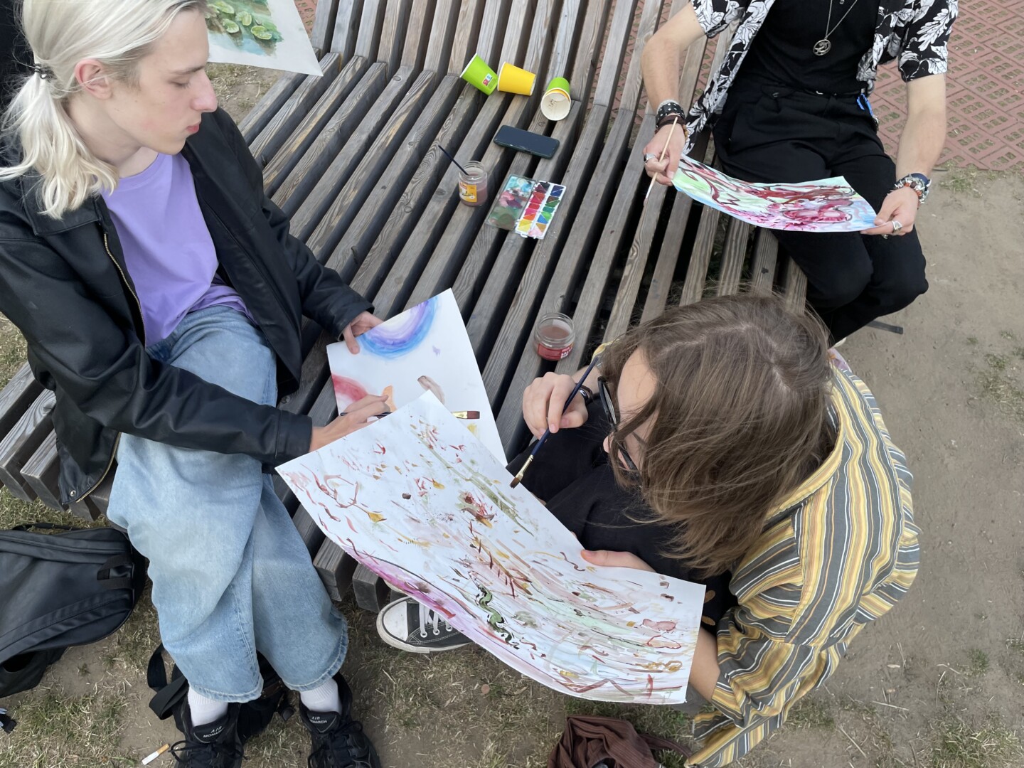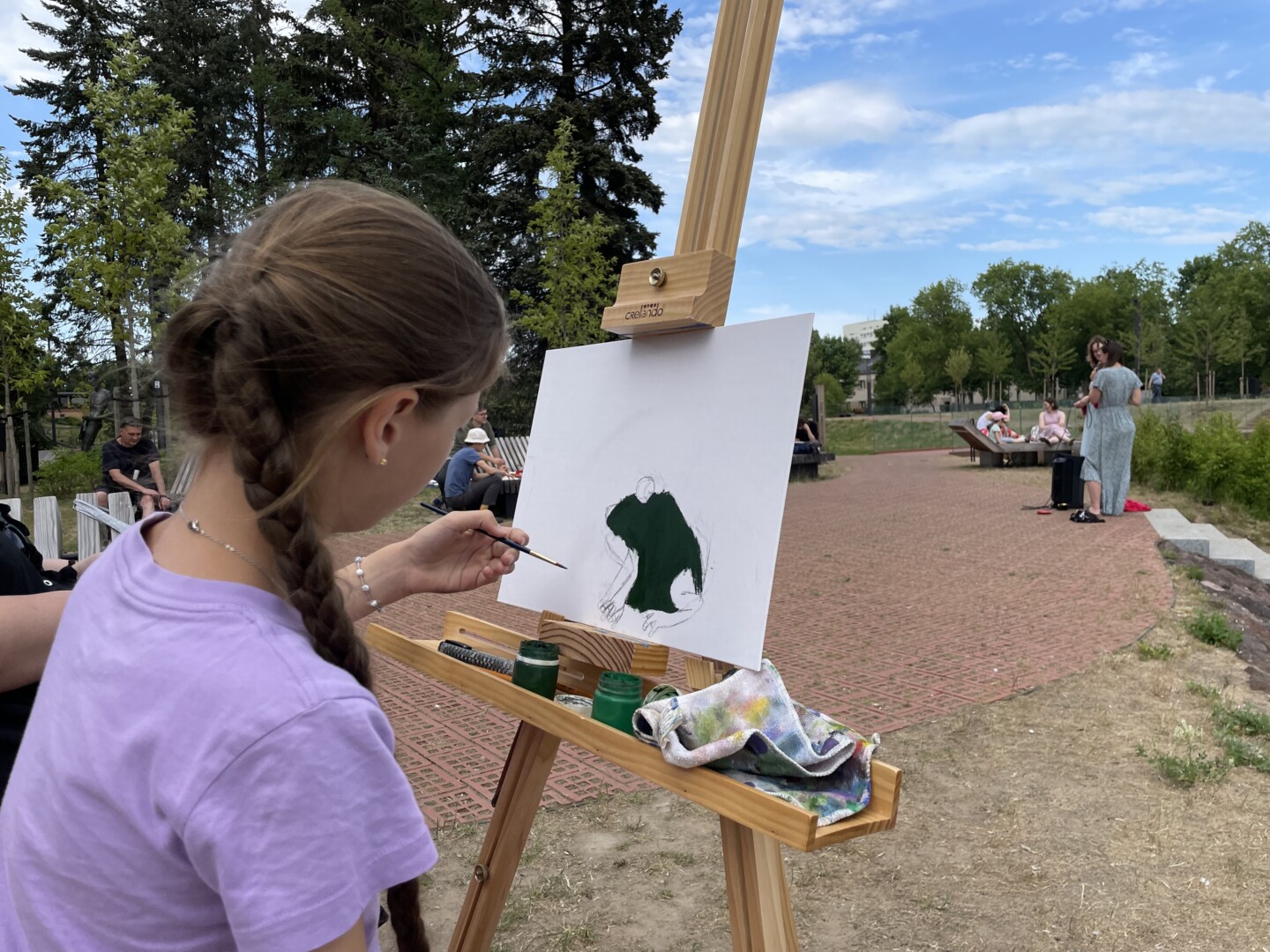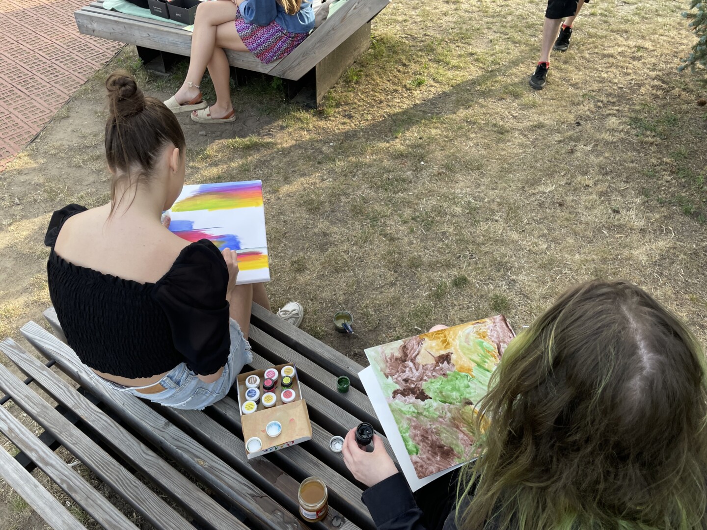 Viena moksleivė atsinešė už save didesnį molbertą, nemažai dalyvių turėjo savo drobes ir dažus.