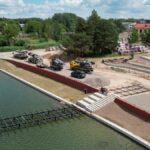 Ginkluoti sunkiasvore technika bei valtimis šio projekto rangovai iš Vilniaus pradėjo pirmuosius montavimo darbus ant vandens.