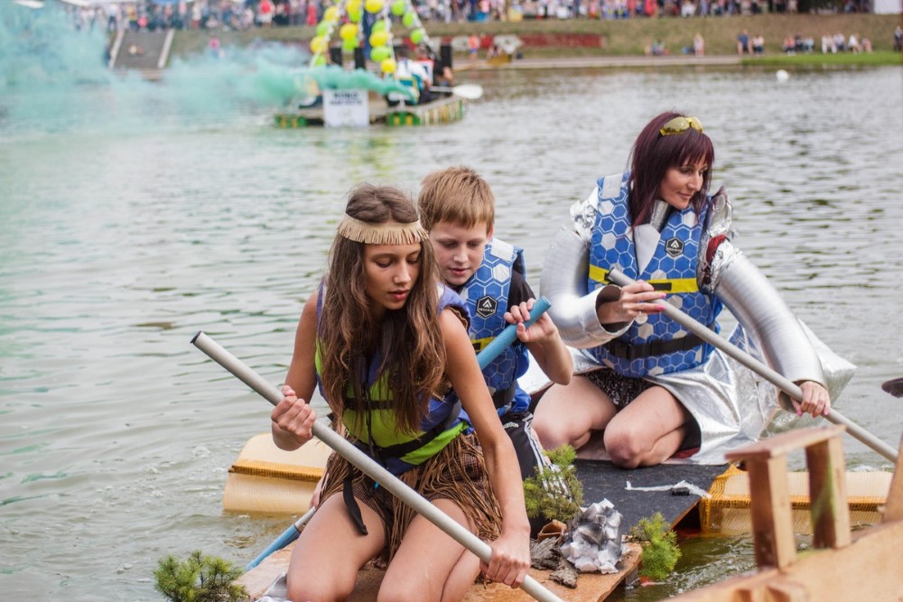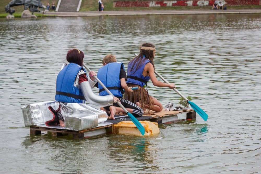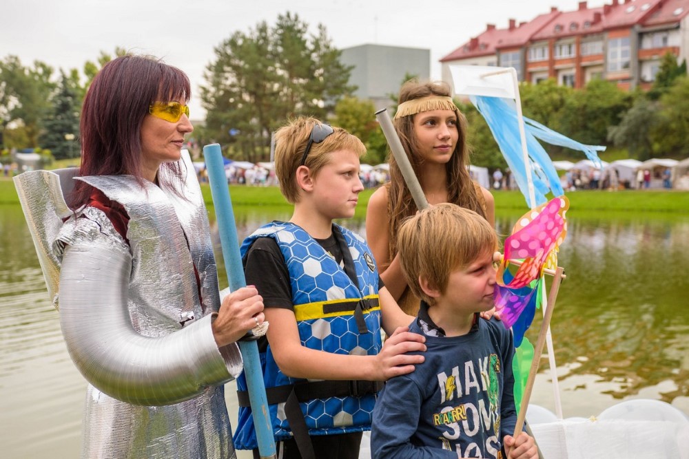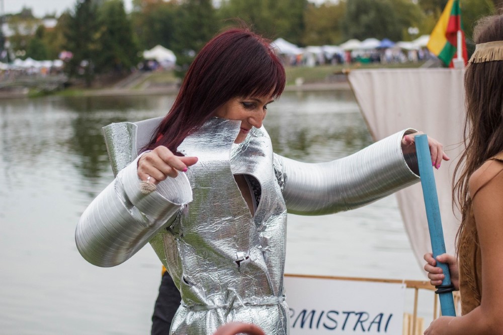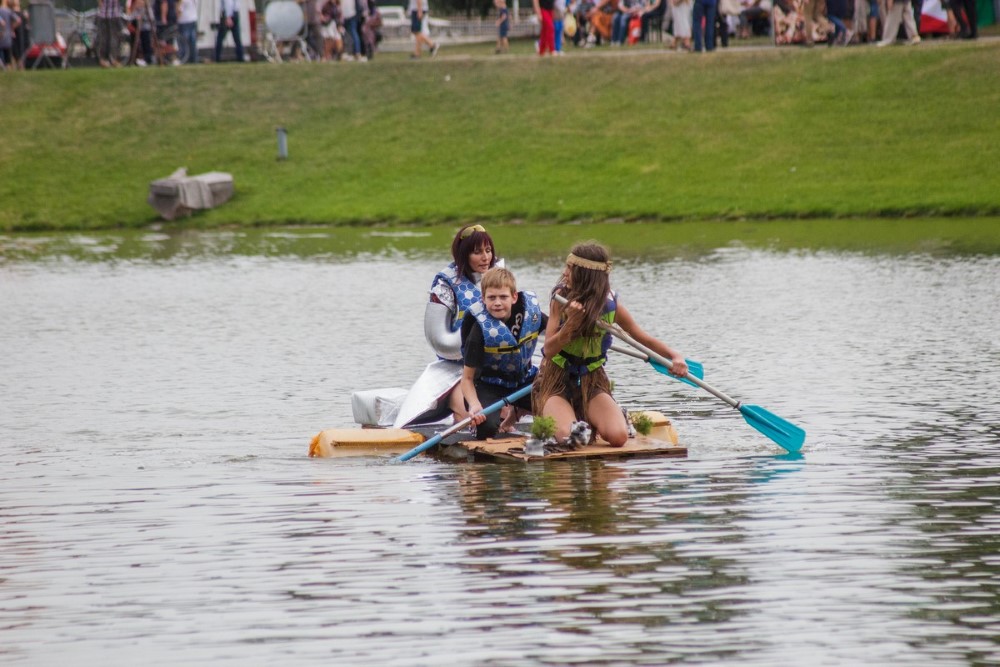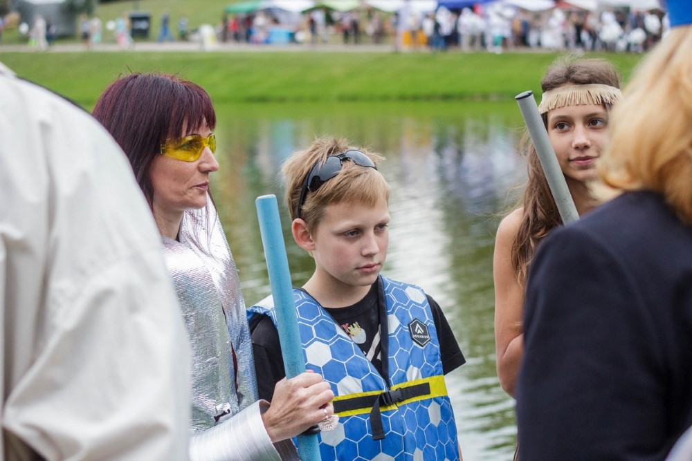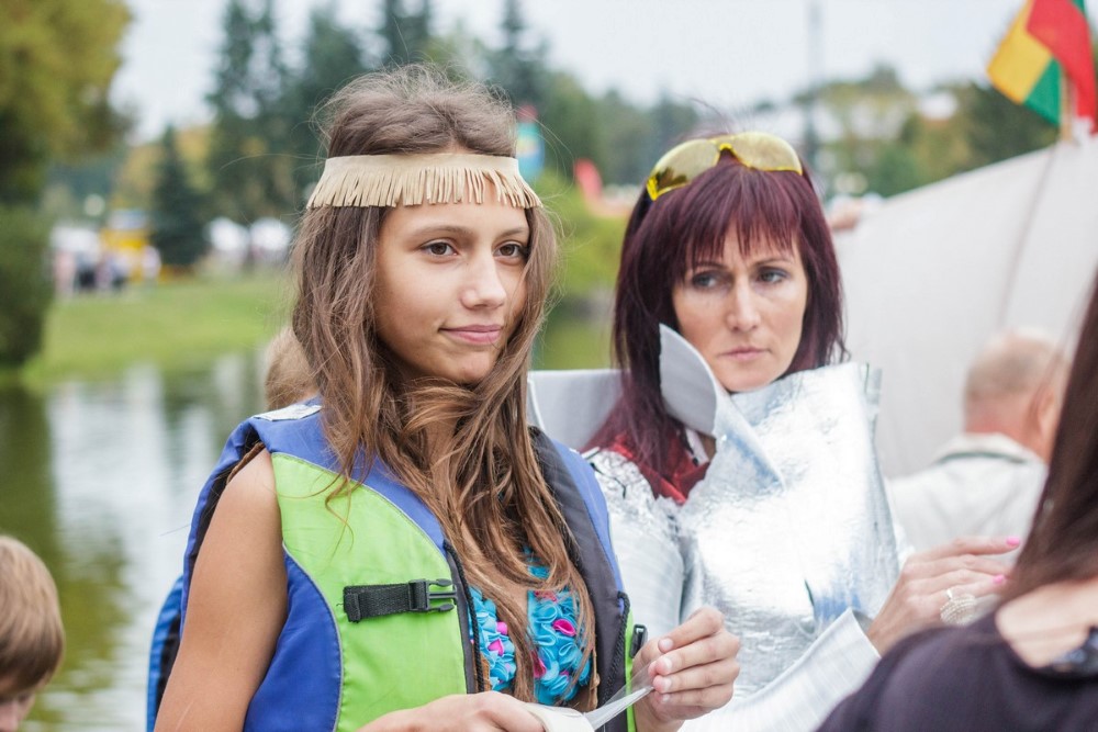 Savo plaustą susikonstravome labai greitai. Nesvarbu koks rezultatas, vaikams tai didžiulė pramoga ir naudingas užsiėmimas – sūnus pirmą kartą į rankas paėmė pjūklą. Norėjau parodyti savo mažyliams, kad reikia visur dalyvauti ir būti aktyviems“, – sakė į krantą išlipusi „Nesuvaldomas lai(k/v)as“ komandos vedlė, blizgia apranga vaizdavusi ateitį. Jos vaikų apdarai simbolizavo praeitį ir dabartį. O pats mažiausiasis į vandenį lipti nedrįso ir buvo lyg švyturys krante šeimos komandai.