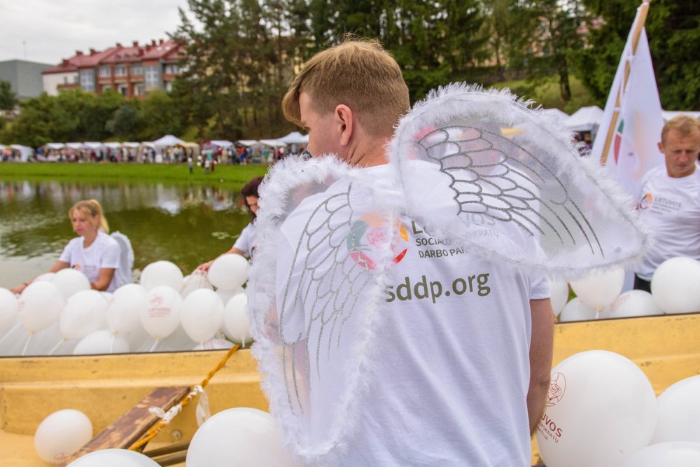 Šios komandos priešininkai Lietuvos socialdemokratų darbo partijos nariai į „Senvagę“ išplaukė „Debesėlio“ vardu. Angeliukais pasipuošę politikai į tokią pramogą įsijungė pirmą kartą. Šios komandos kapitonė Aida Miknevičienė pasakojo, kad  įgula plaustą su baltais balionėliais gamino dvi savaites.
