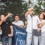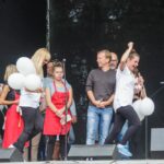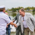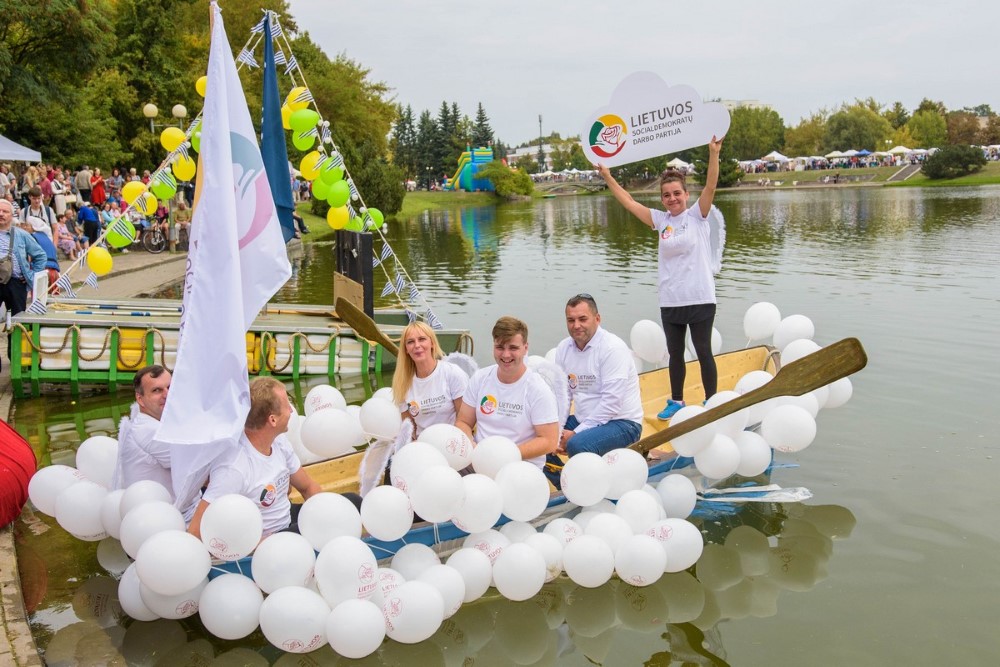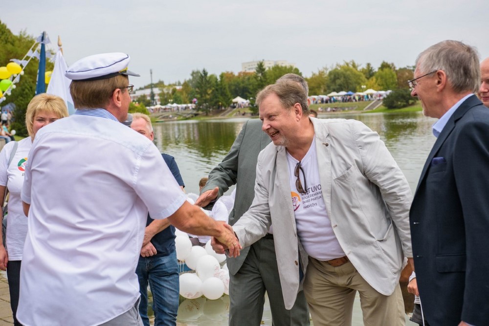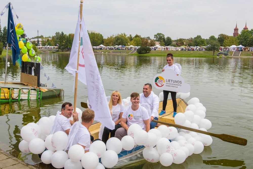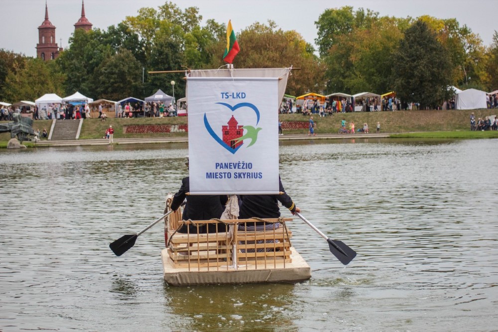 Pirmuoju laivu plaukė Tėvynės sąjungos – Lietuvos krikščionių demokratų Panevėžio miesto skyriaus pirmininkė Rasa Juknevičienė ir jos kolegos – kandidatai į būsimo Panevėžio mero pareigas Marius Mališauskas bei Indiana Grigienė.