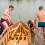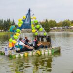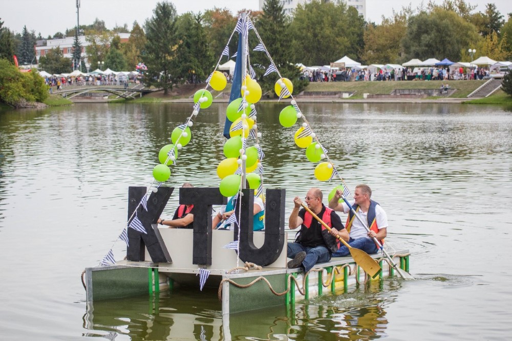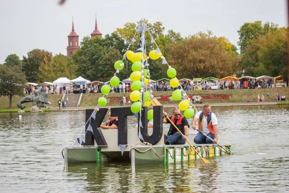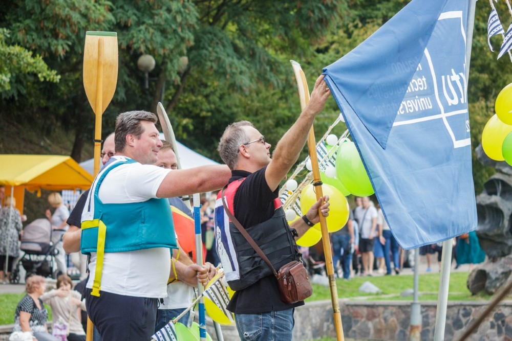 Jos kapitonas Remigijus Kaliasas pasakojo, kad gimtadienio varžybos sutapo su universiteto studentų baigiamuoju darbu. Jaunimas iš antrinių žaliavų kūrė plaustą, kuris atlaikytų kelionę Nemunu ir jį išbandė Senvagėje.
