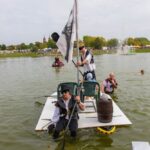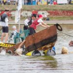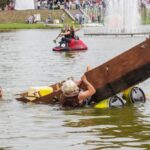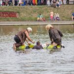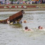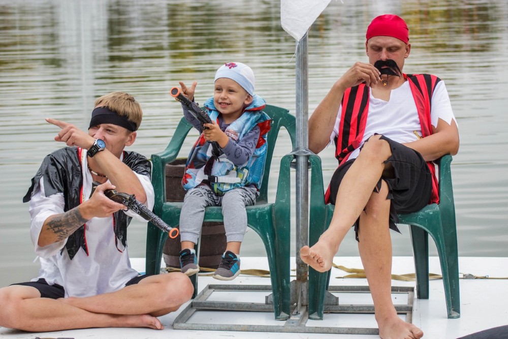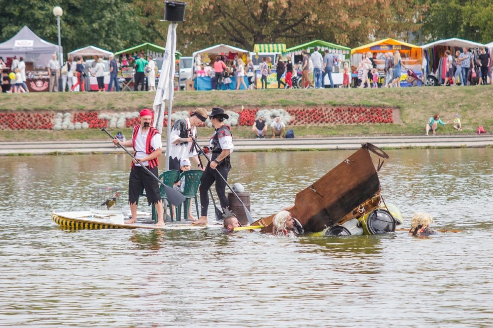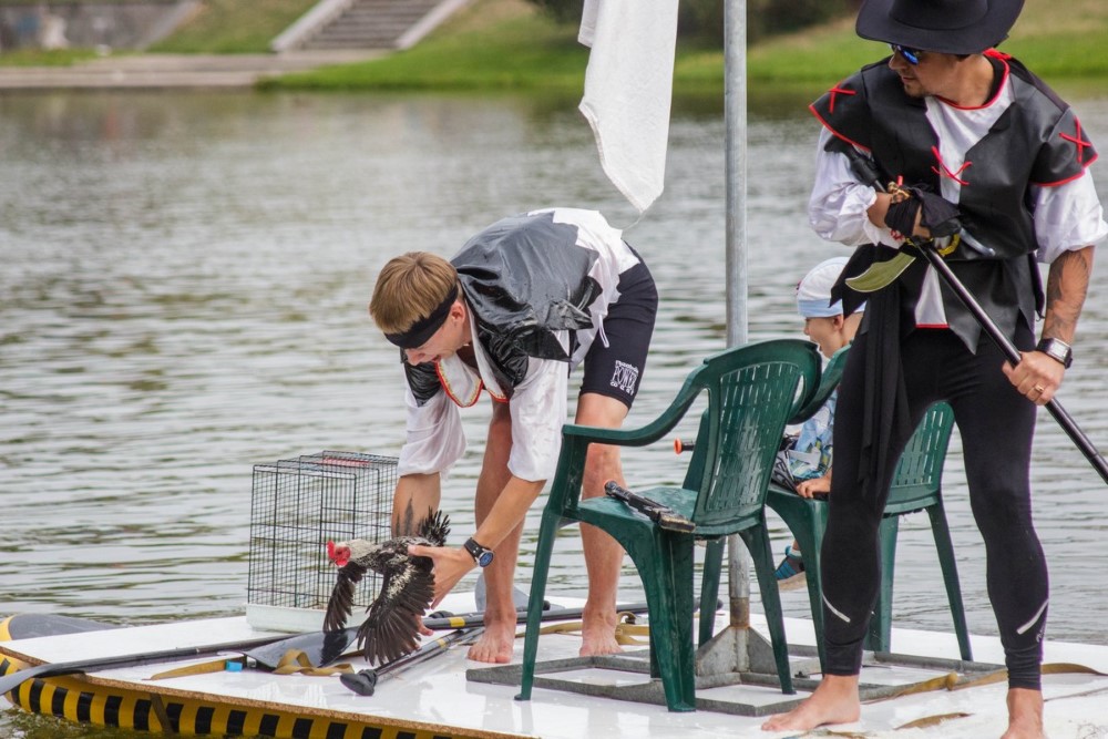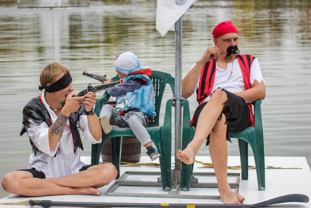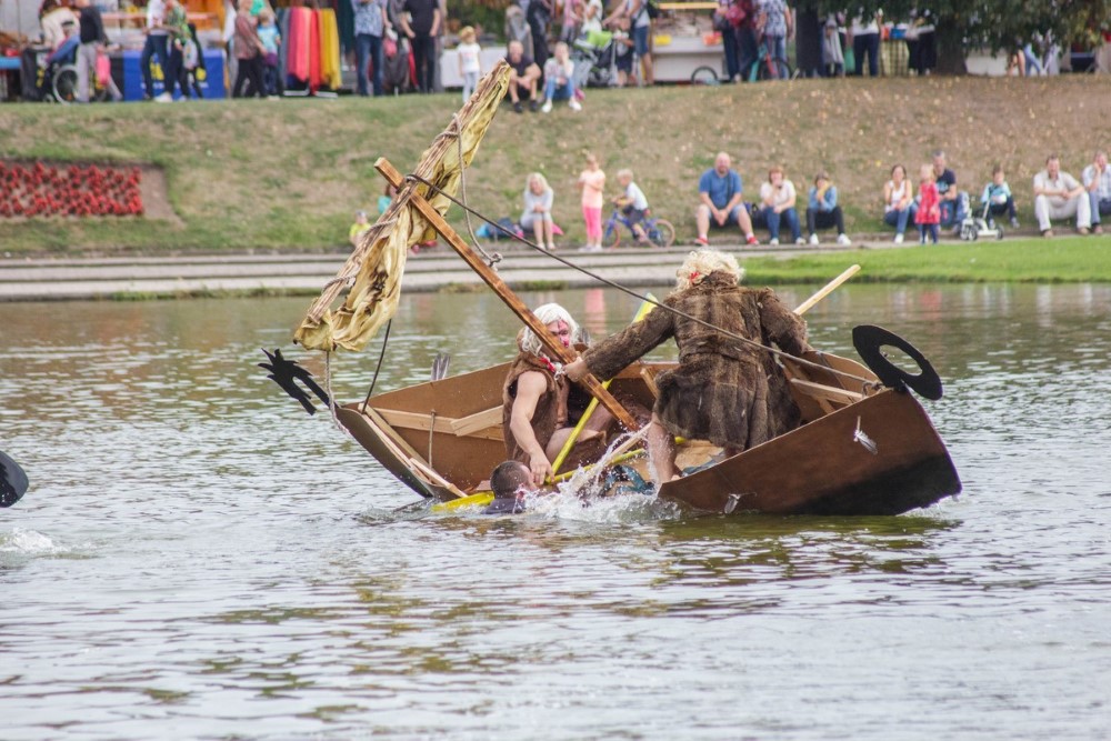 Varžybose netrūko azarto ir ekstremalių akimirkų: vienas laivas nepasiekęs kranto ėmė skęsti. Į vandenį su apvirtusia iš medžio drožlių plokštės pagaminta valtimi paniro „Valkirija“ pasivadinusi senų bičiulių, buvusių kambariokų komanda. Juos jėga „nuskandino“ „Perlai“ – veržlių piratų komanda.