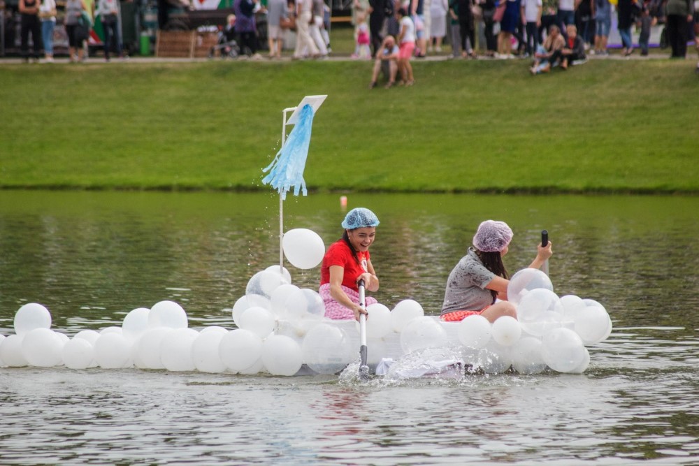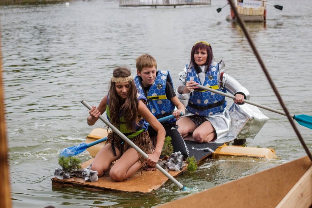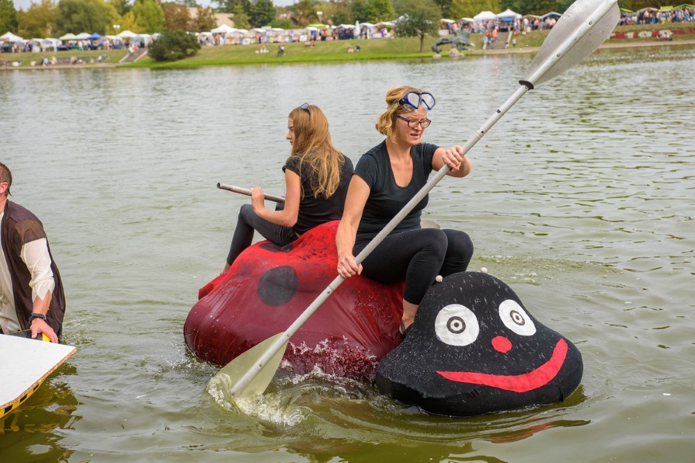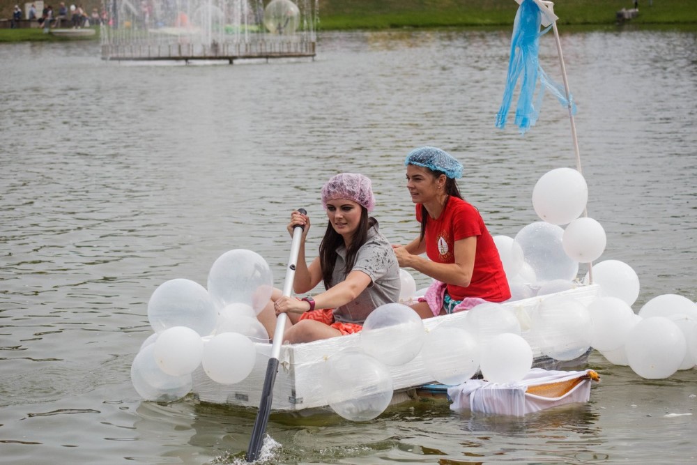 Su muzika, sklindančia iš kuprinės, varžybose likus kelioms minutėms iki starto sugalvojo dalyvauti dviejų moterų komanda „Boružėlės“. Iš padangų sumontuotas jų plaustas buvo ne tik patikimas, bet ir greitas.