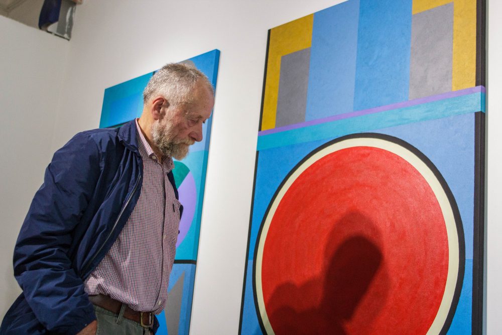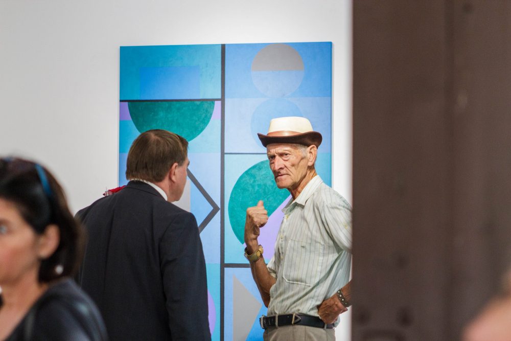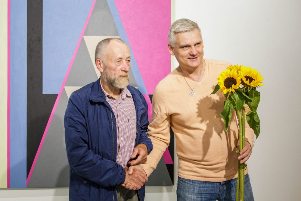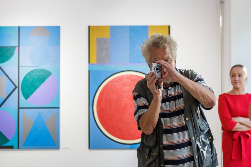 „Kai kalba apie savo kūrybą, jis yra linkęs ją nuvertinti ir atsainiai sakyti, jog ji nieko nereiškia. Tačiau geometrinės kompozicijos nėra paprastas dalykas, ypač kai kalba eina apie tokio dydžio drobes ir tokio ryškumo spalvas“, – kalbėjo S. Laurinavičius.