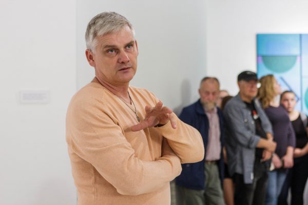 „Tušinuku mechaniškai braukydavau kažkokias kreives ir išeidavo tam tikra geometrinė kompozicija“, – sakė T. Rudokas.