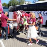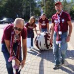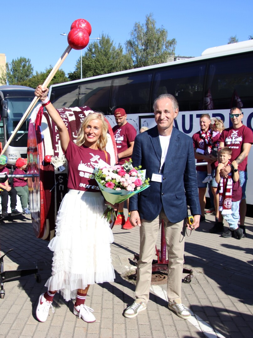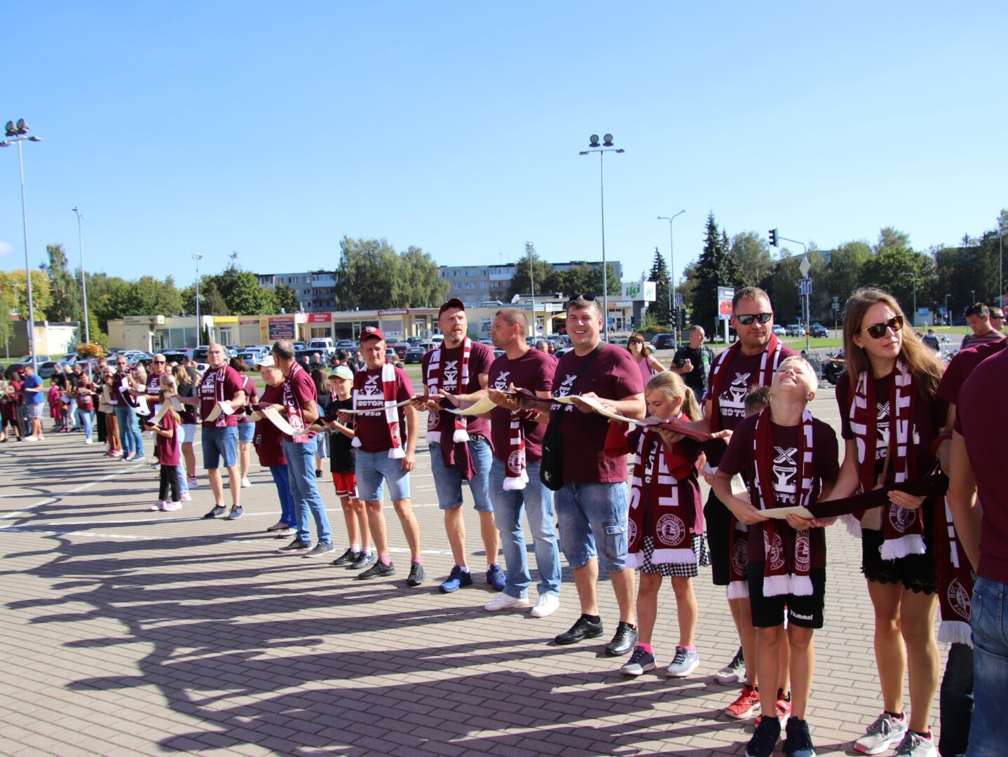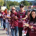 Krepšinio gerbėjai čia atvežė ir visos vasaros rezultatą – 1650 metrų ilgio, 12 cm pločio rankomis megztą „Lietkabelio“ spalvų bordinės ir baltos šaliką.