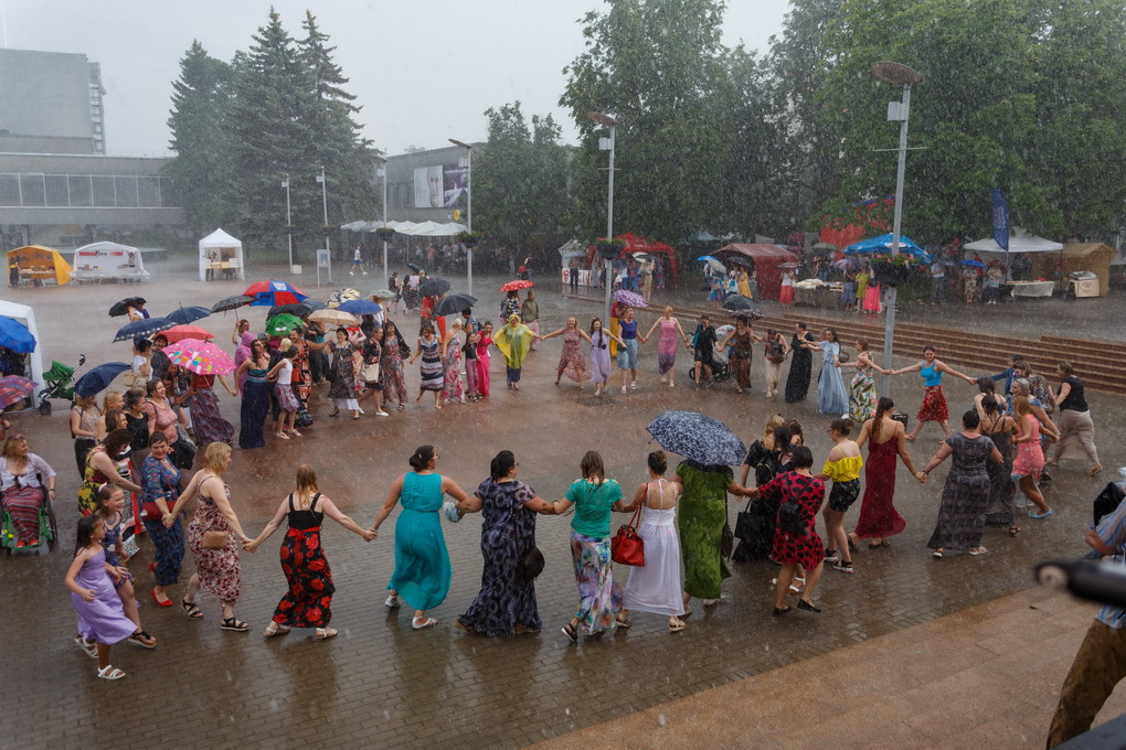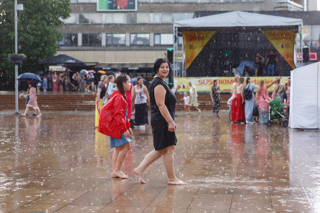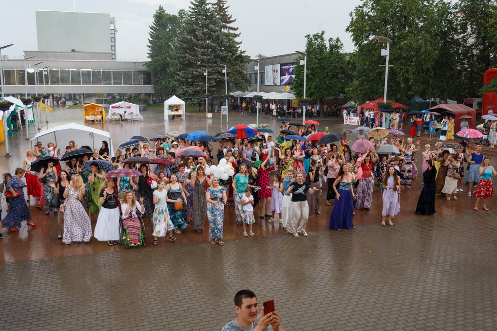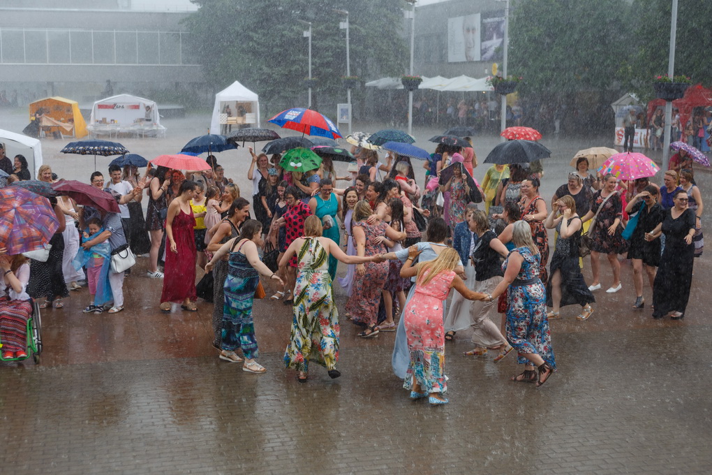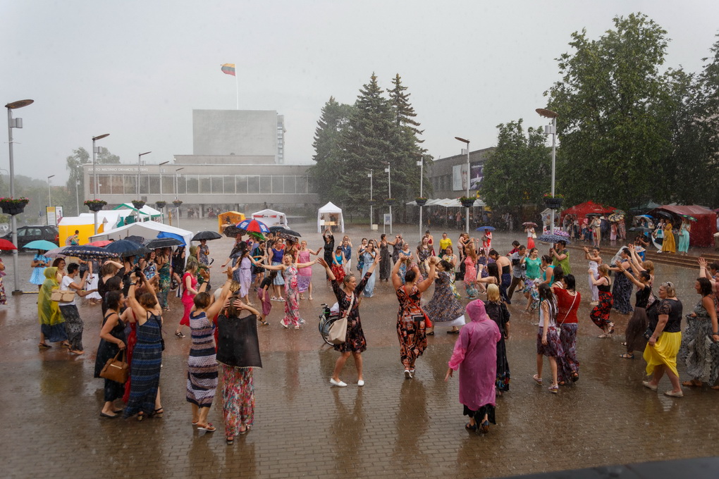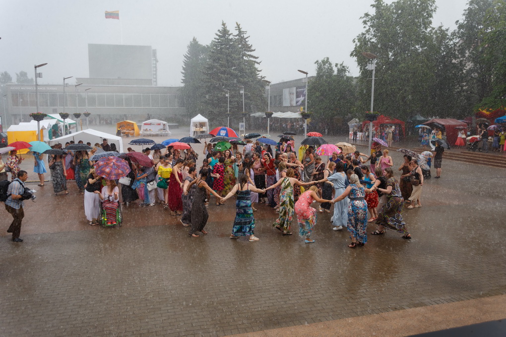 Žaibiškame šokio sambūryje dalyvavusias moteris ir išprausė staigi liūtis. Tačiau drąsiausios šokių karalienės neišsigando atsivėrusio dangaus – užuot puolusios slėptis, baigė šokį. Ir nors dalį Laisvės aikštėje susirinkusios minios liūtis išblaškė, dalyvauti tolimesniuose renginiuose buvo kam.