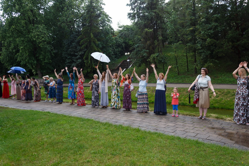 Viena „Sijonuotos vasaros“ Panevėžyje organizatorių Rūta Vindelskytė džiaugėsi, kad nors penktadienio rytą dalyvauti buvo užsiregistravusios apie 280 moterų, iš tikrųjų susirinko gerokai daugiau – suskaičiuota apie tris šimtus.