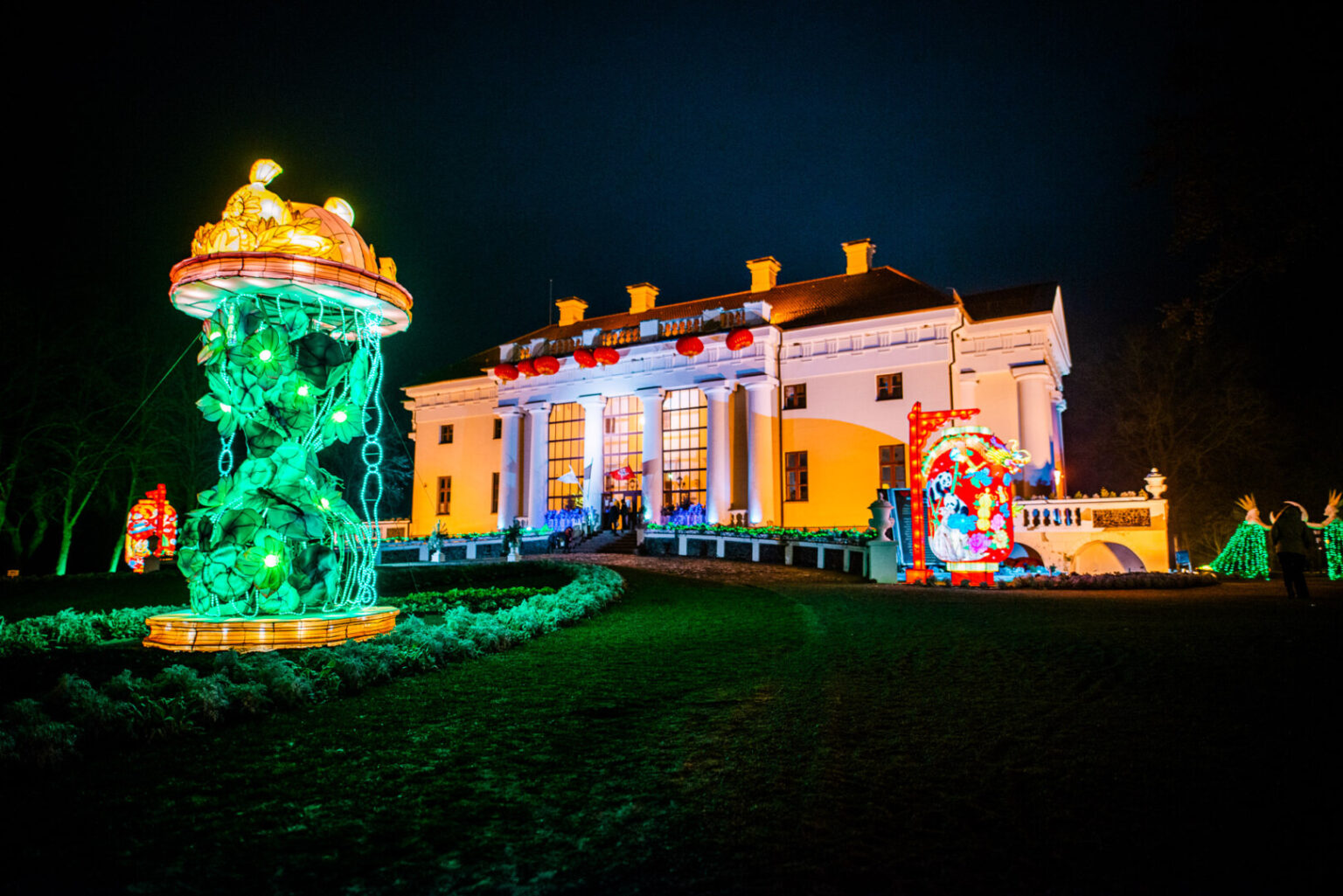 Kalėdų ir šviesos karalyste virstantį dvarą būtų galima keliskart apsukti spalvingo šilko, kuris bus panaudotas žibintų skulptūroms sukurti, juosta. Būtent šiomis dienomis dvaro teritorijoje – pats darbymetis, mat poros dešimčių meistrų ir dailininkų, atvykusių iš Azijos, komanda kasdien konstruoja neįtikėtino dydžio figūras. Jų sukūrimui bus panaudotas Lietuvoje neregėtas kiekis šilko, iš viso – beveik 10 km ilgio medžiagos, kurią atgabeno daugiau nei 30 konteinerių, o skulptūrų viduje bus įrengtos sudėtingos šviesos instaliacijos. Netrukus, jau lapkričio 26 dieną, įsižiebsiančiame žibintų festivalyje šiemet bus galima išvysti daugiau kaip 50 skirtingų meninių šviesos kompozicijų, sudarytų iš atskirų didžiulių šilko skulptūrų.