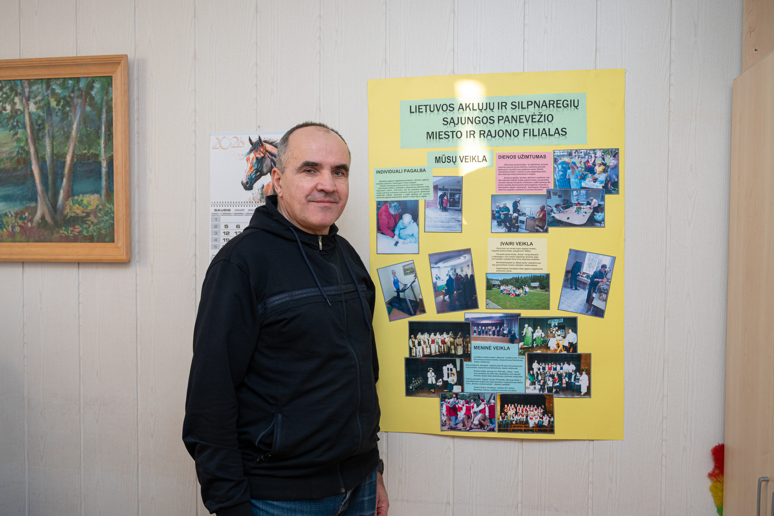 J. Maselis – silpnaregis, jau dvylika metų vadovaujantis Lietuvos aklųjų ir silpnaregių sąjungos Panevėžio miesto ir rajono filialui.