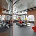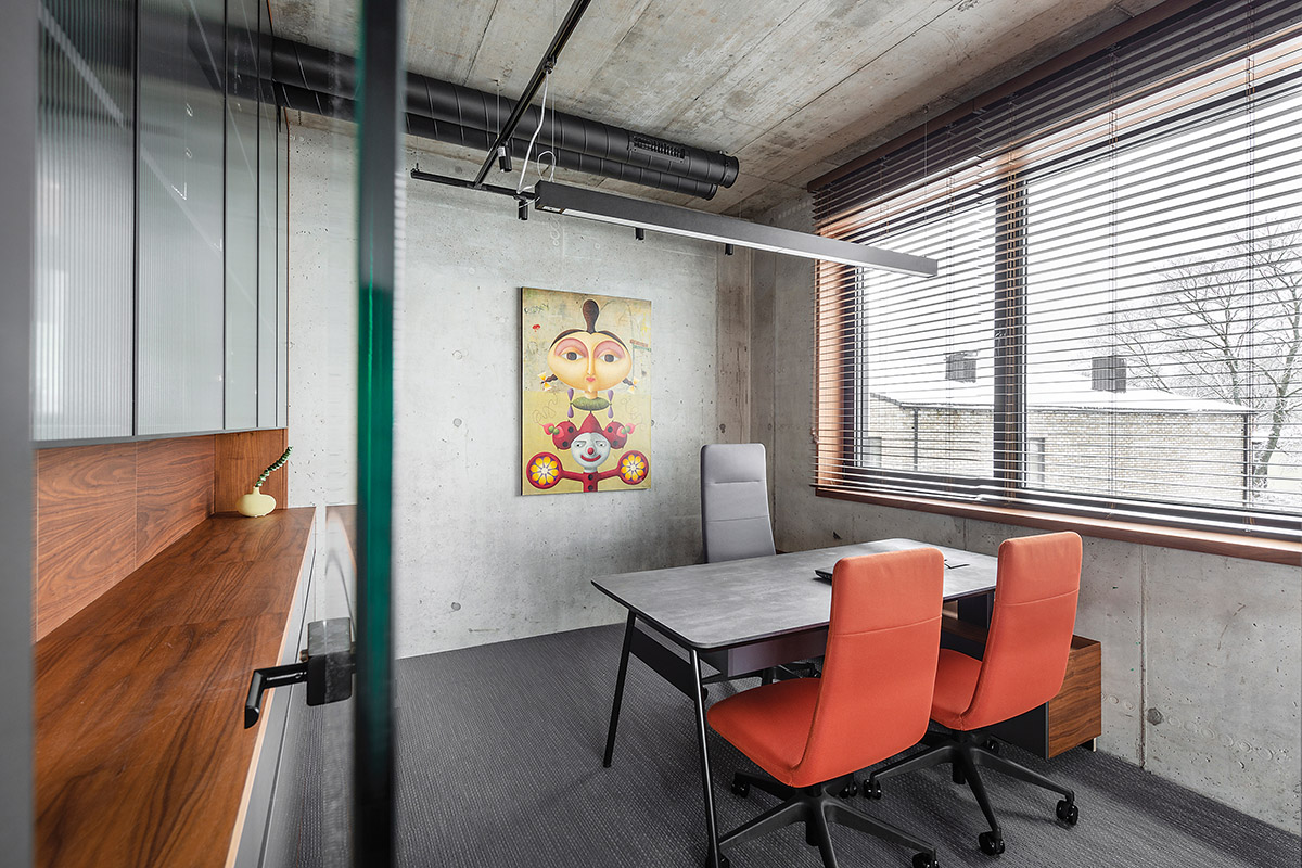 „Visame biure naudotos tos pačios medžiagos, jų nėra daug. Yra tik keli spalviniai elementai, paveikslai. Visur kitur stengėmės išlaikyti vientisumą, neužgožti už langų esančių vaizdų, kurie taip pat sudaro grafinį piešinį“, – atliktą darbą apibendrina I. Prunskaitė.