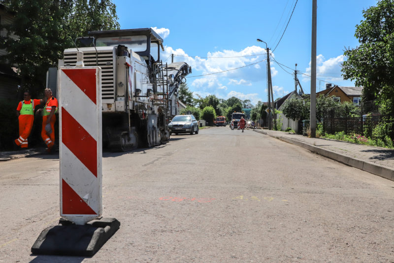Apie terminus kalbėjo ir keli sutikti kelininkai tvarkomoje J. Bielinio gatvėje. Ši taip pat ruošiama asfaltuoti – gremžiama sena asfalto danga.