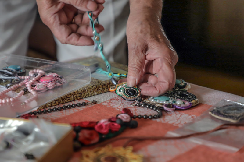 Įvairiausių pusiau brangių akmenukų – nefrito, ametisto, čekiško kristalo, agato prisipirkusi parduotuvėse, G. Karpavičienė ilgai derina jų išraiškas, spalvas, nuotaikas, o paskui veria, klijuoja, pina, kol gimsta dailūs, moterų mėgstami papuošalai.