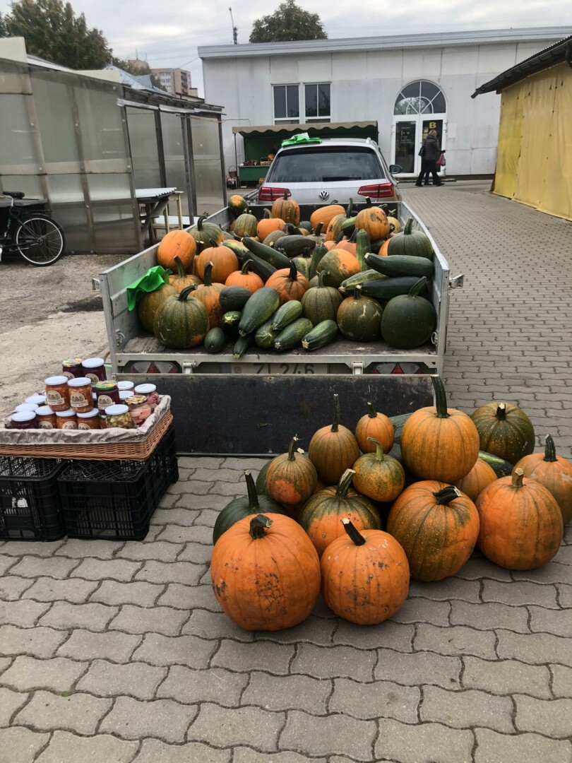 Už maždaug krepšinio kamuolio dydžio moliūgą Mantas prašė 3 eurų, už mažesnius – ir po eurą ar du. Pasak jaunojo ūkininko, parduoti ne pagal svorį, o vienetais yra paprasčiau.