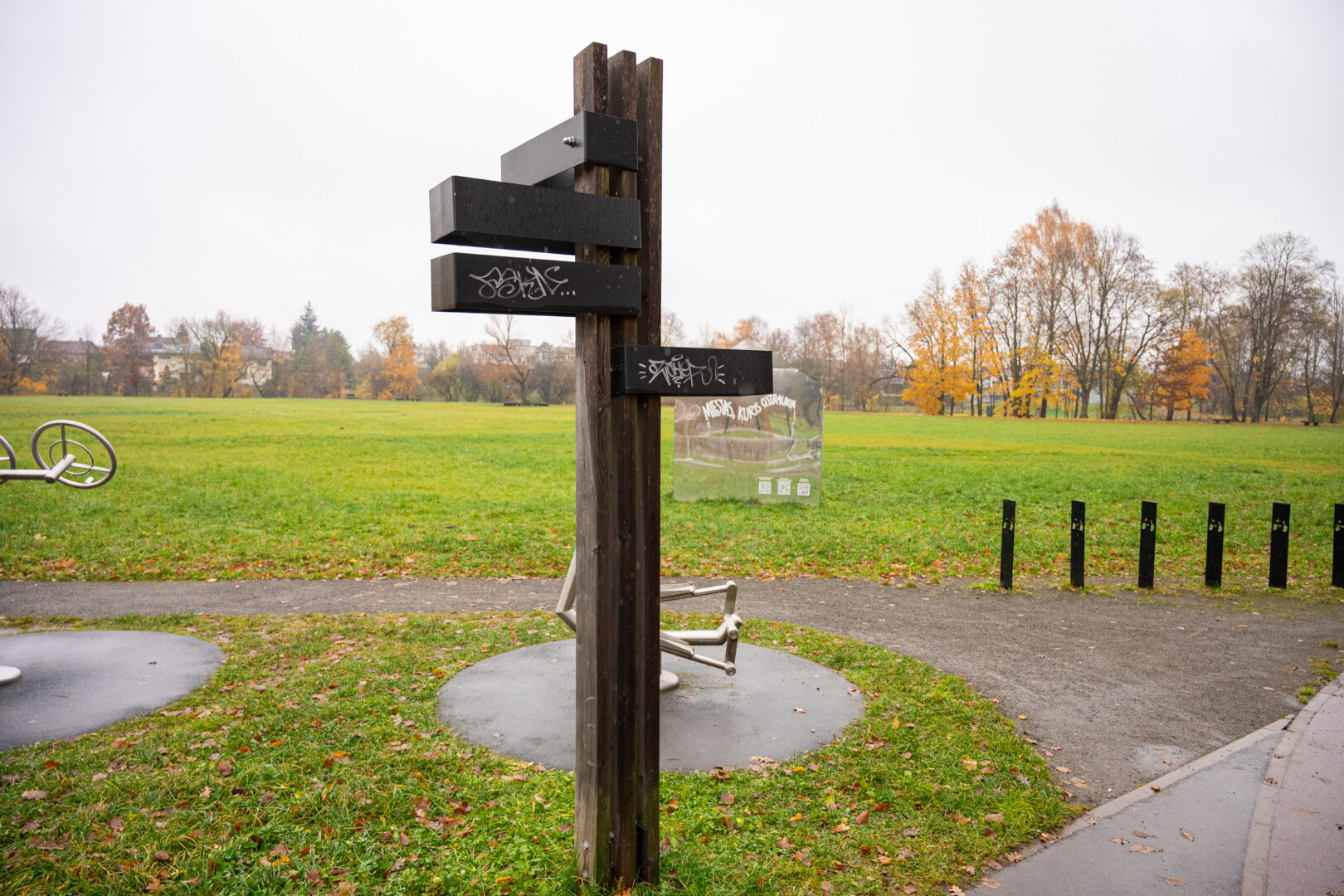 Jie jau spėjo bjauriomis teplionėmis išmarginti tuščius parko stendus.