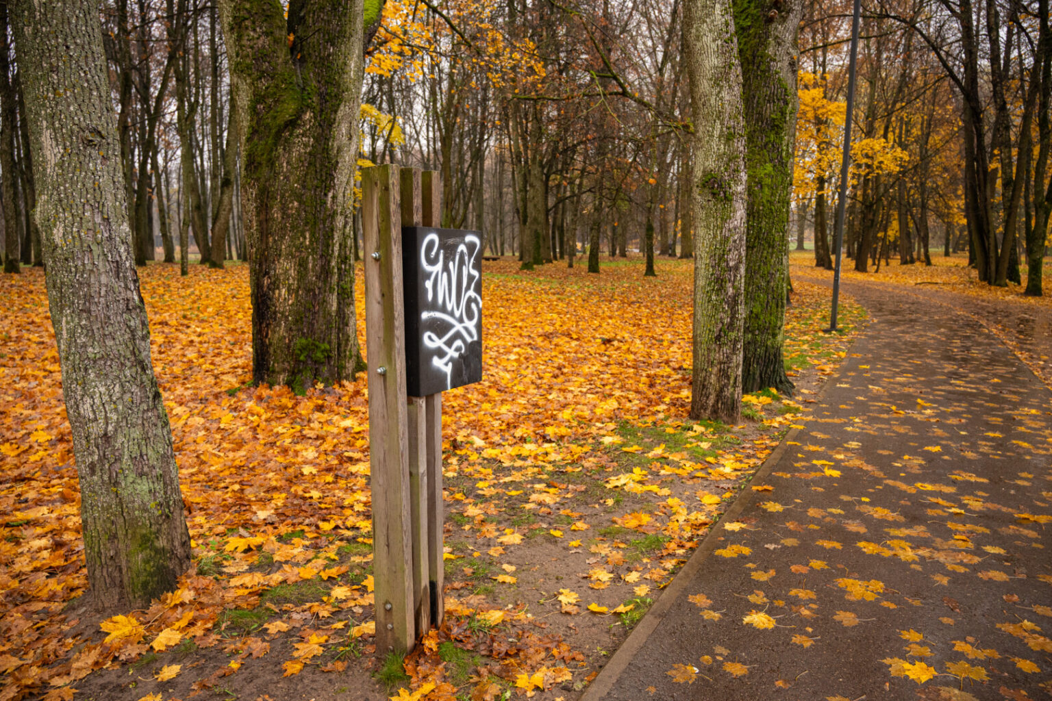 Jie jau spėjo bjauriomis teplionėmis išmarginti tuščius parko stendus.