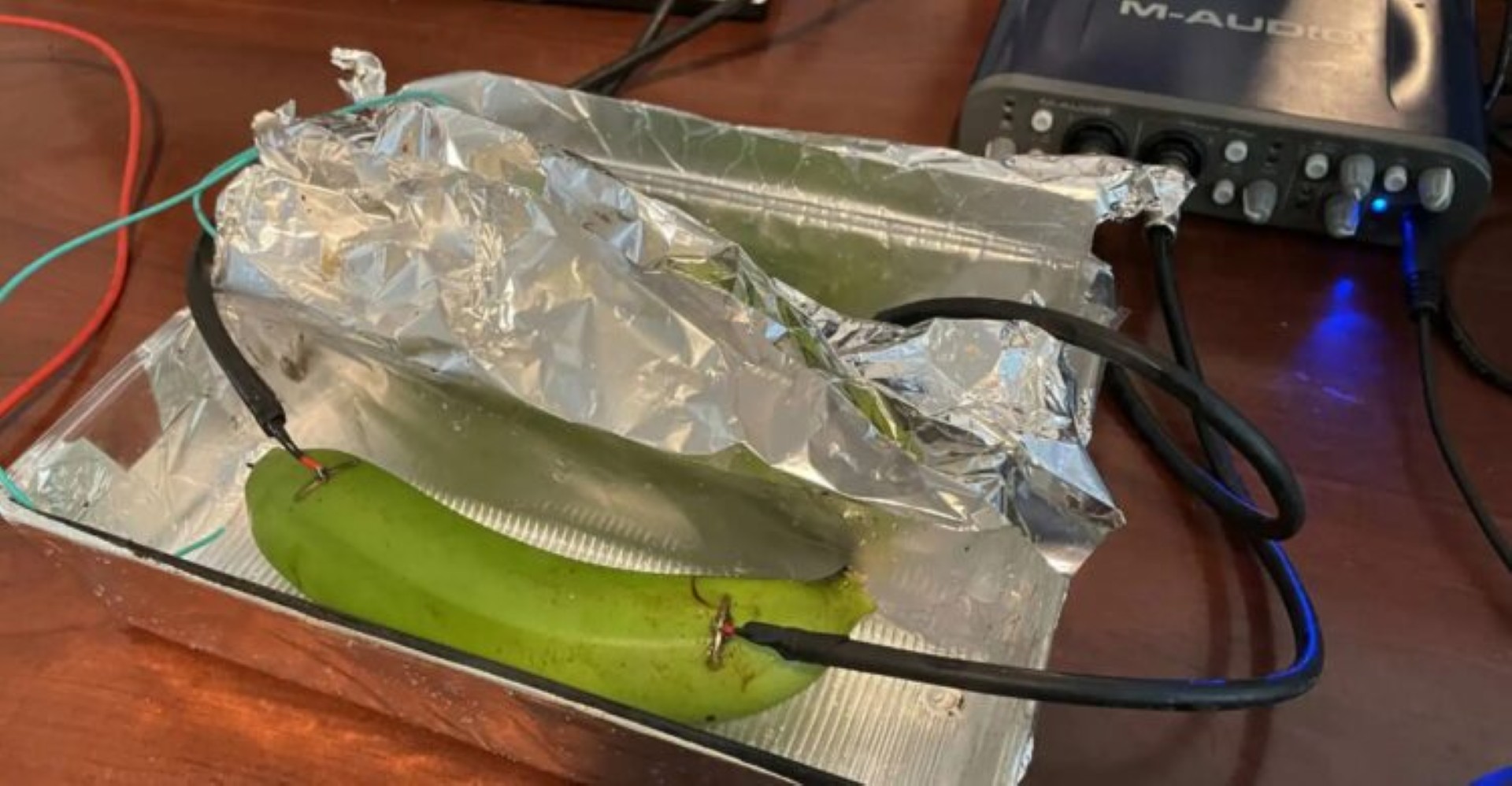 Banane yra pakankamai drėgmės ir elektrolitų, kad jis galėtų praleisti elektros srovę. Žinoma, ne idealiai, tačiau analoginiam garso signalui perduoti to visiškai pakanka.