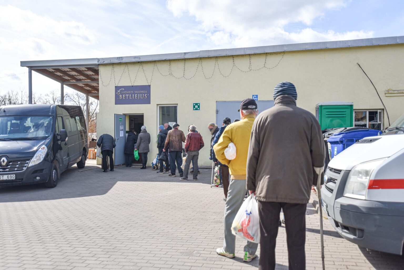 Katedros gatvėje veikiančioje „Betliejaus“ labdaros valgykloje dar prieš 14 val. pradeda būriuotis ateinantieji karštos sriubos dubenėlio. Sriuba čia verdama tiršta ir soti, o jos įpilama negailint. Jos prašančiajam kartais tai būna vienintelis visos dienos maistas.