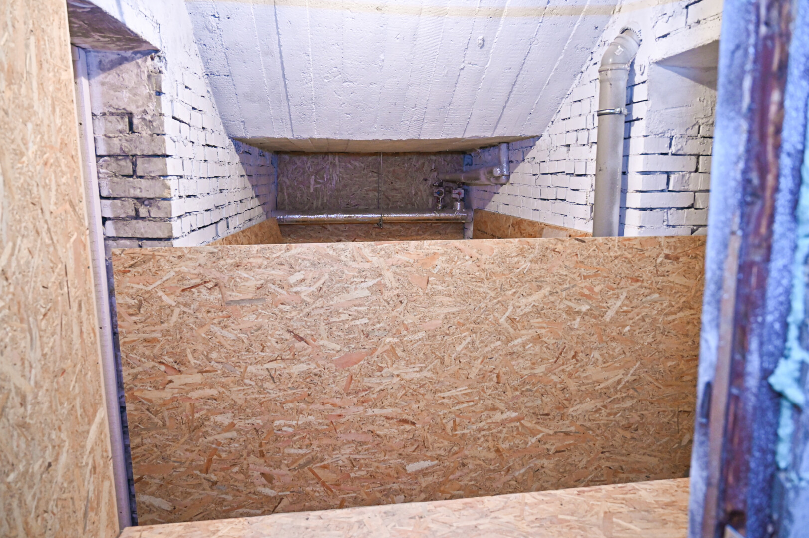 Į naująją slėptuvę, kaip ir priklauso, veda du įėjimai, o nuo vieno namo galo iki kito galima pereiti per rūsio koridorių.
