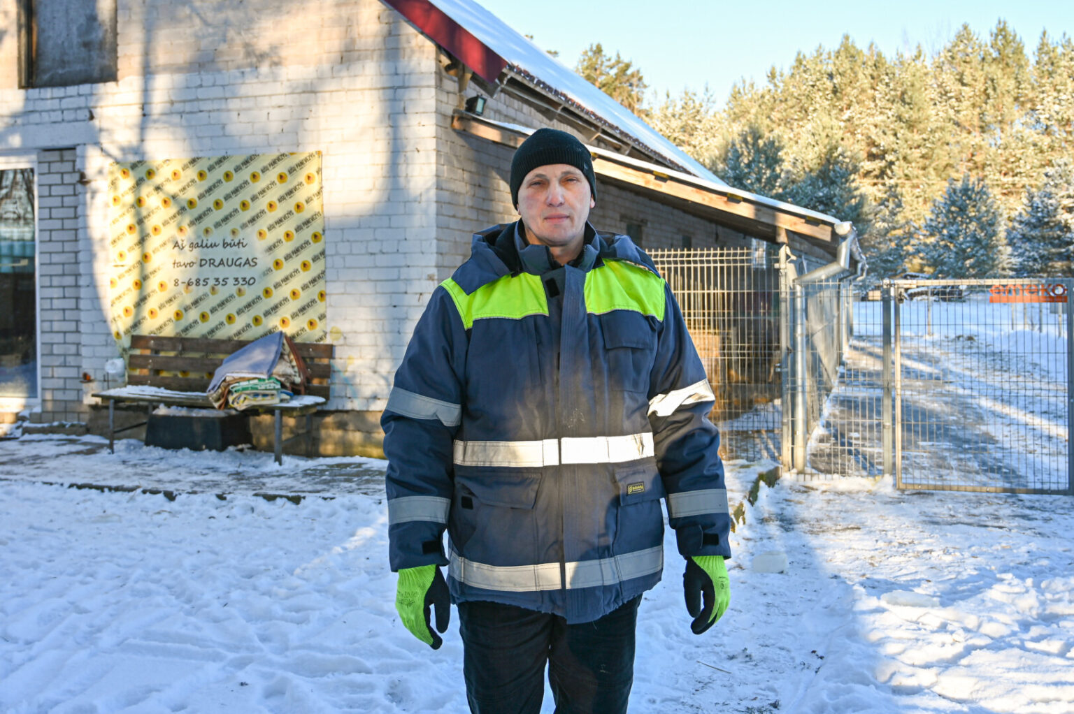 „Jau gaunu pensiją, bet dirbti tikrai dar galiu. Užaugau kaime Dnipro srityje, mano tėvai – žemdirbiai. Nuo pat jaunumės teko rūpintis ūkyje augintais arkliais, jautukais, netgi esu studijavęs aukštojoje žemės ūkio mokykloje, bet jos nebaigiau. Darbas gyvūnų prieglaudoje man prie širdies“, – per trumpą pertraukėlę prieglaudoje tarp šunų voljerų valymo pasakoja ukrainietis.