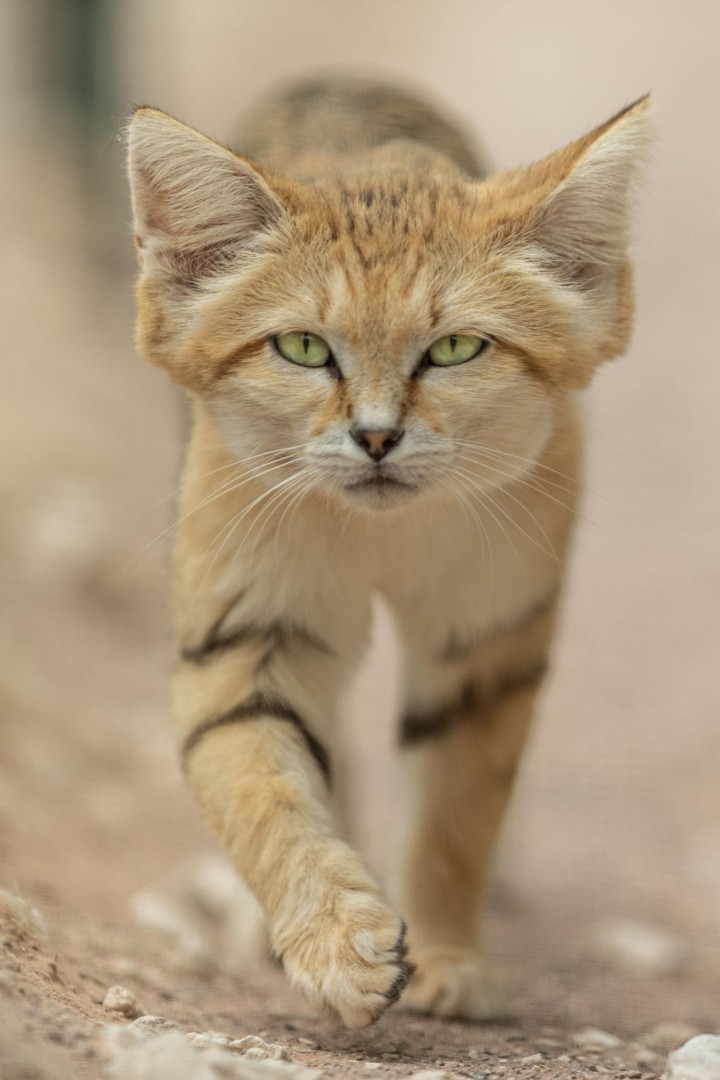 Mokslininkams, bandantiems tyrinėti šiuos slapukus, tenka itin sudėtinga užduotis: smėlyninės katės tarsi vaiduoklės ištirpsta beribėse smėlio platybėse.