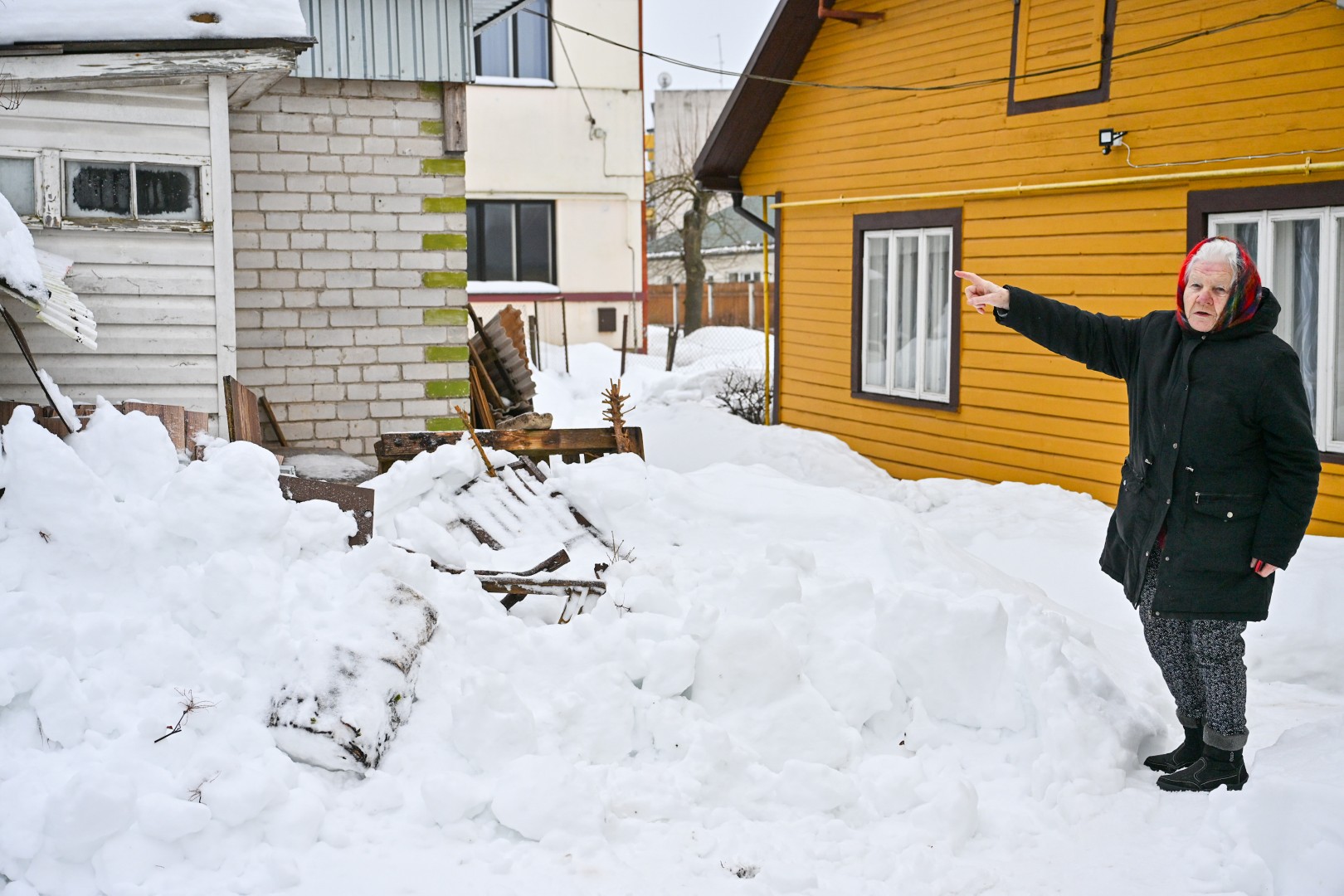 Ši 90-metė beda pirštu į turgų. Mat jo tvarkdariai, pasak senjorės, nuo turgaus stoginių sniegą nustūmė tiesiai ant kaimynės sandėliukų.