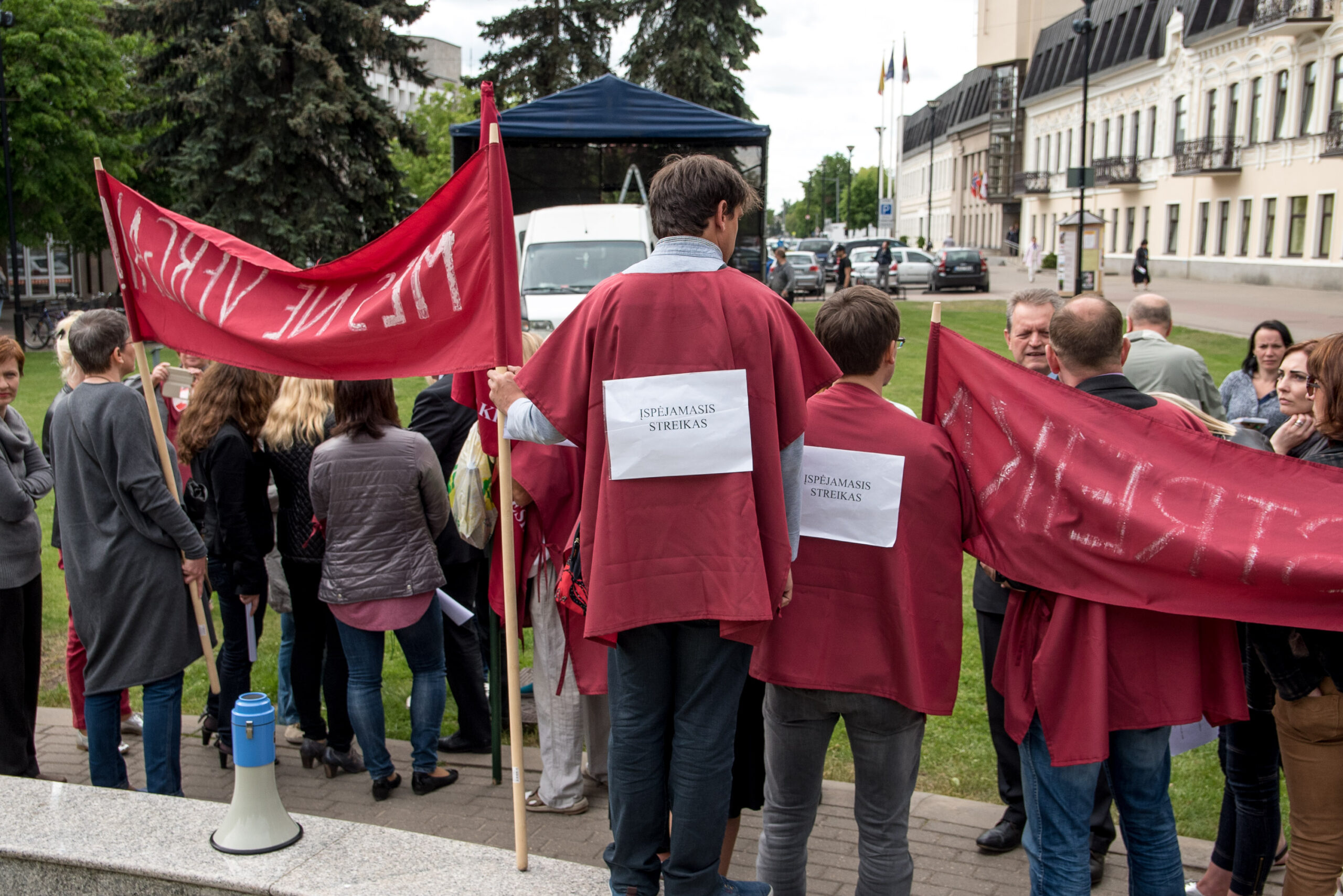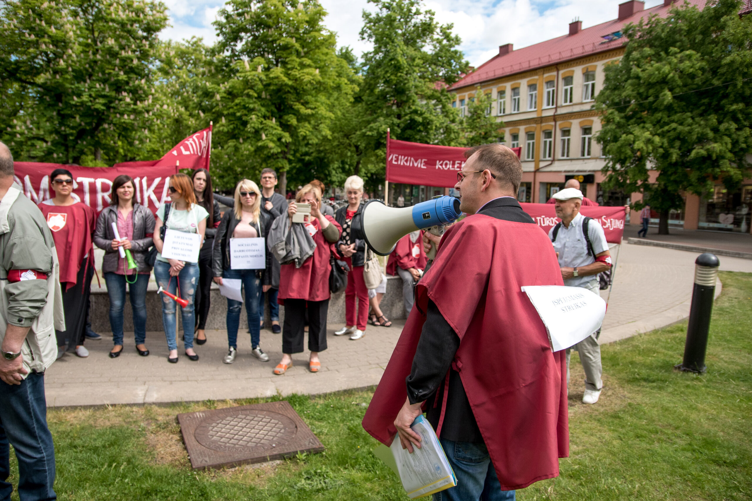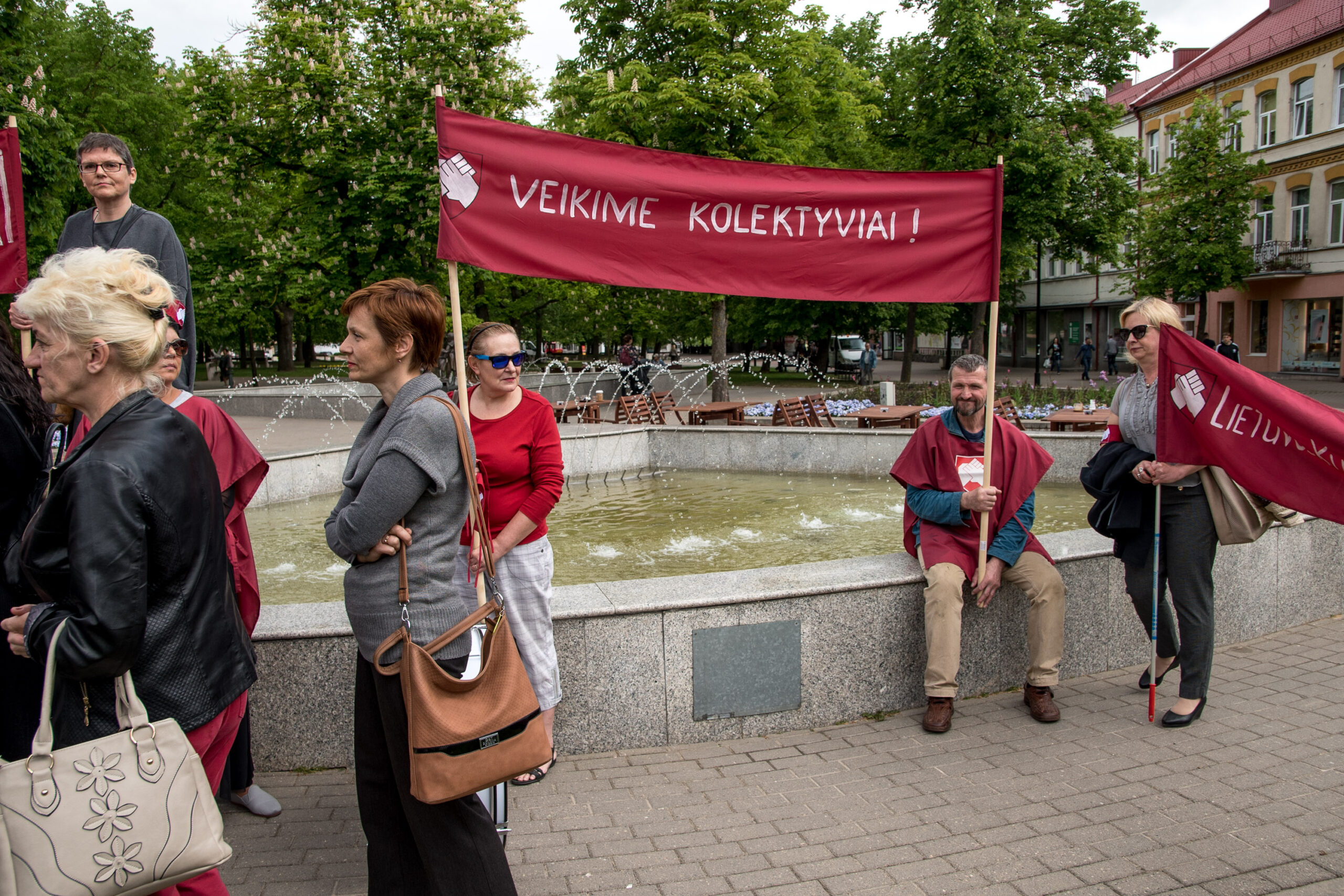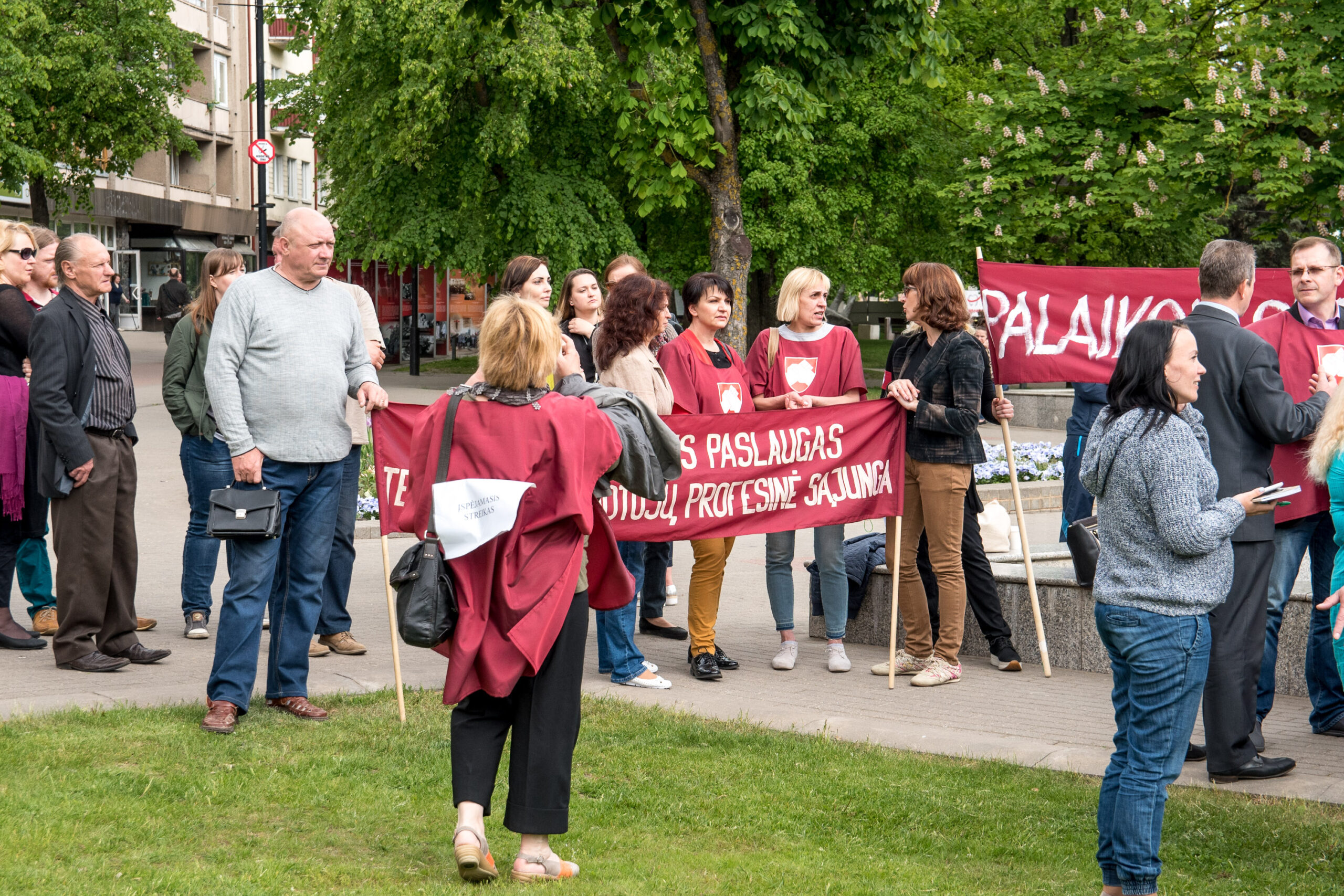 Palikę darbo vietas, su vėliavomis ir šūksniais streikuoti į Laisvės aikštę išėjo daugiau nei trečdalis Panevėžio socialinių paslaugų centro darbuotojų. Dėl to jų darbovietėje kilo šiokia tokia sumaištis.