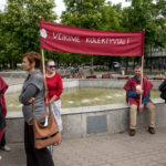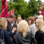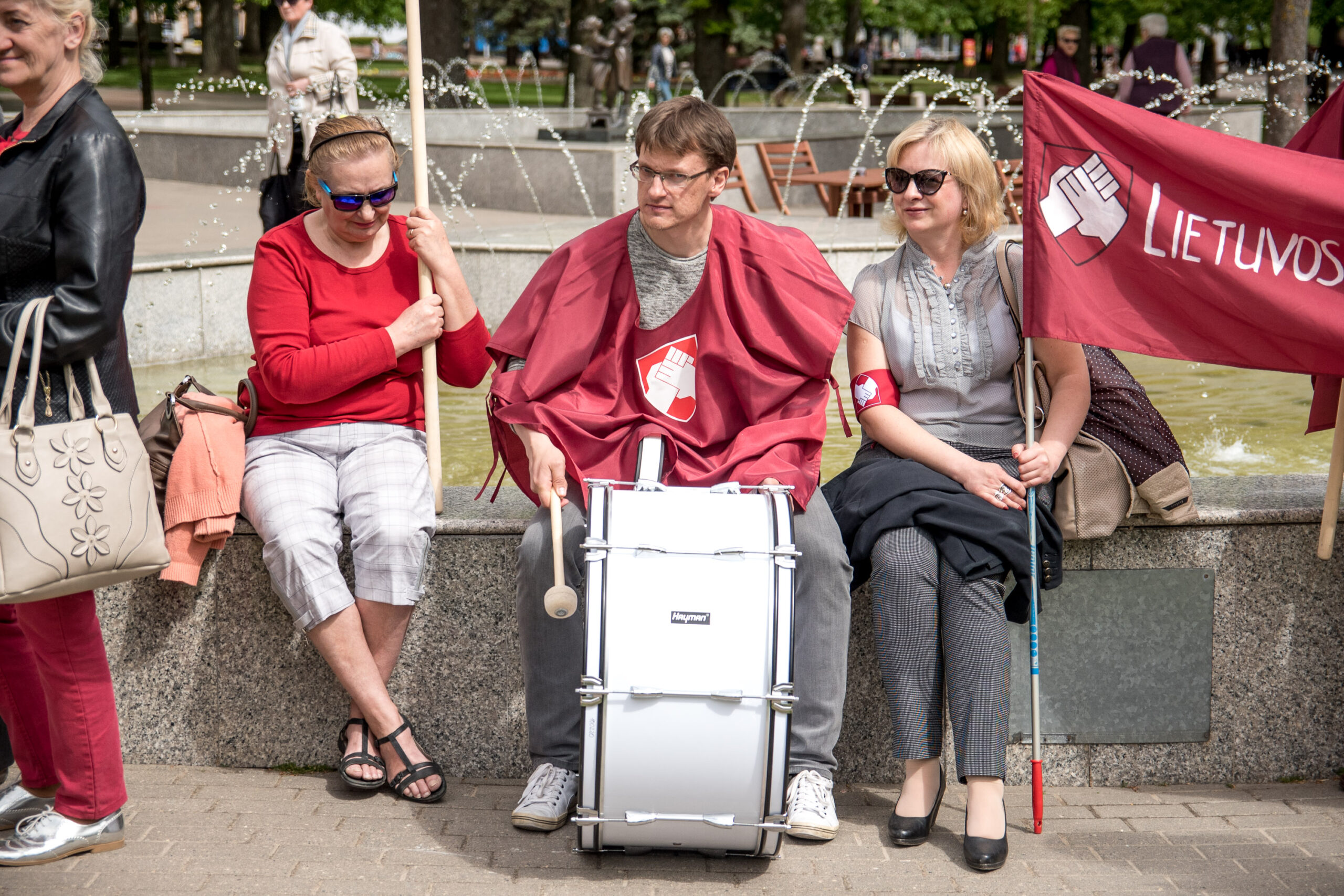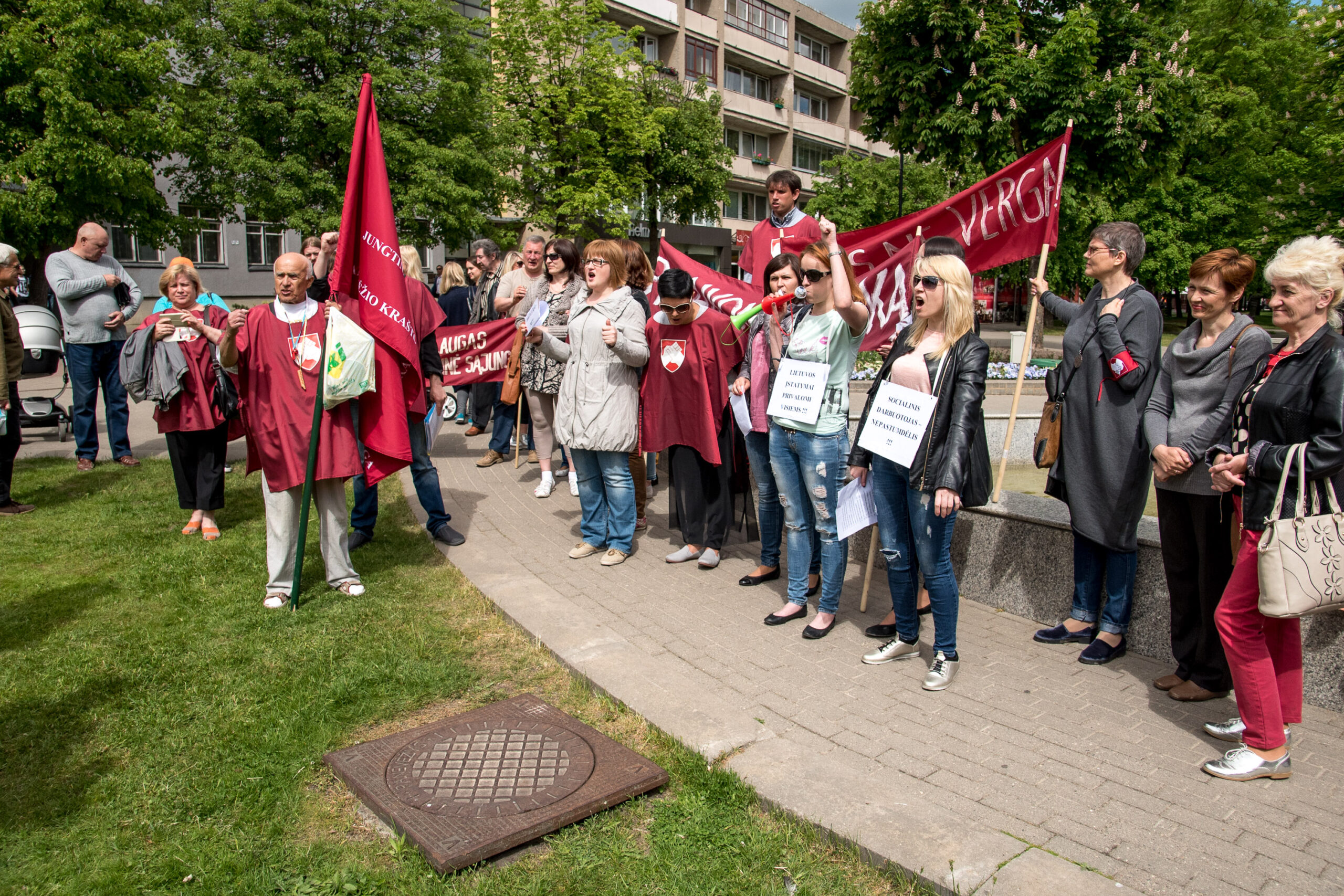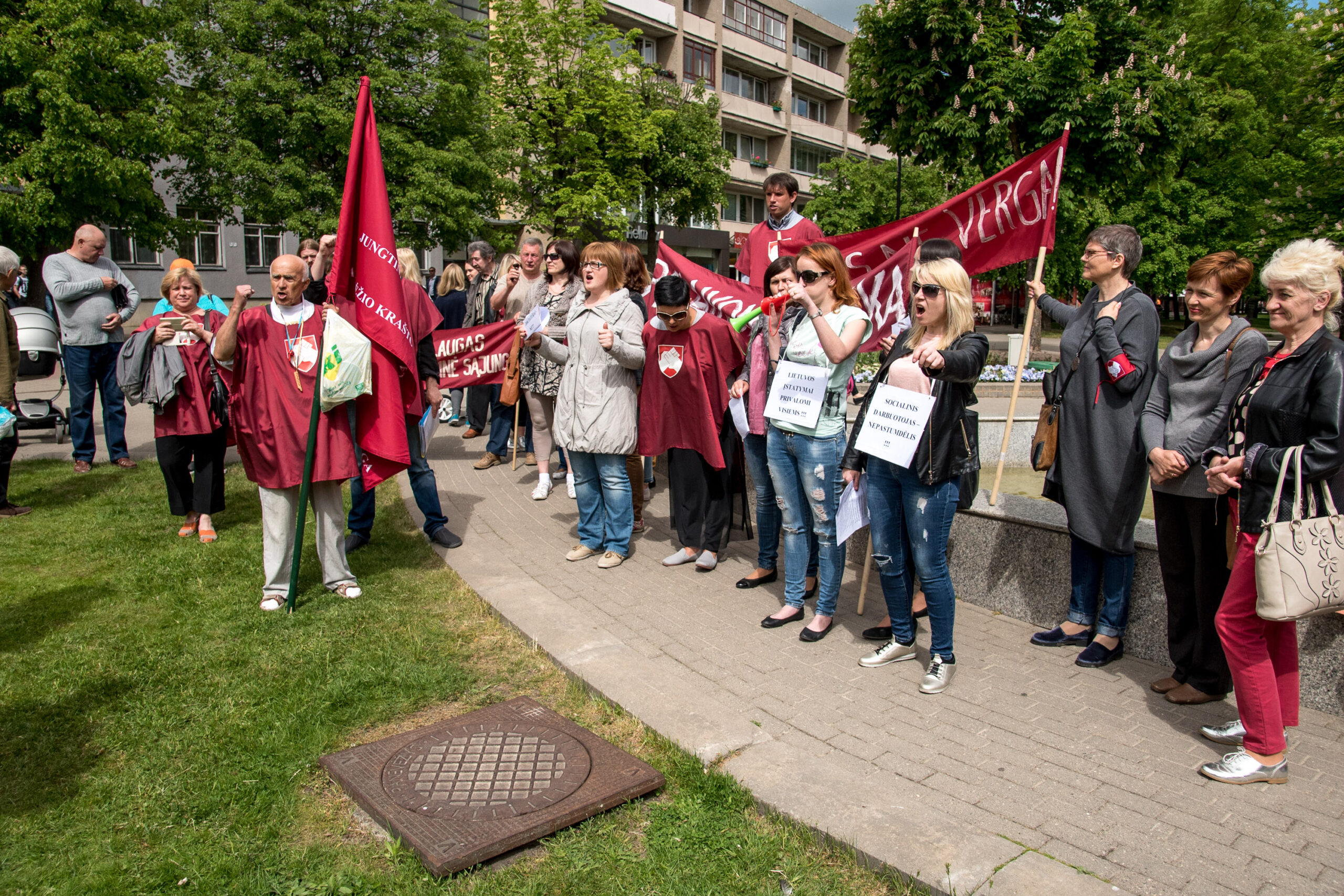 Palikę darbo vietas, su vėliavomis ir šūksniais streikuoti į Laisvės aikštę išėjo daugiau nei trečdalis Panevėžio socialinių paslaugų centro darbuotojų. Dėl to jų darbovietėje kilo šiokia tokia sumaištis.