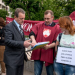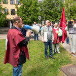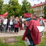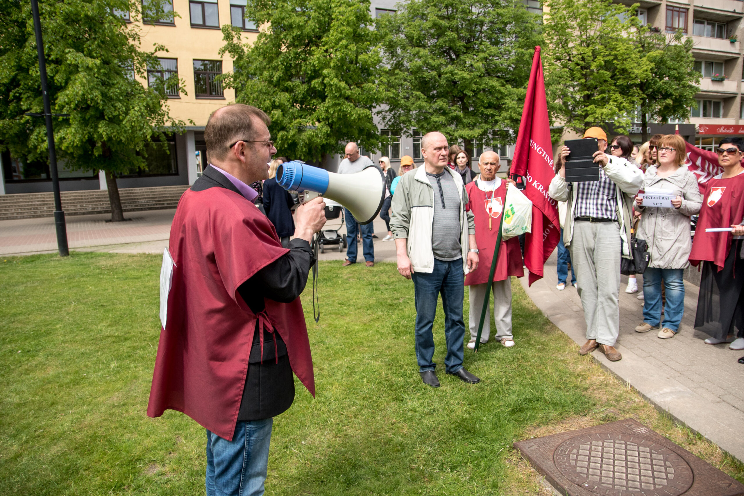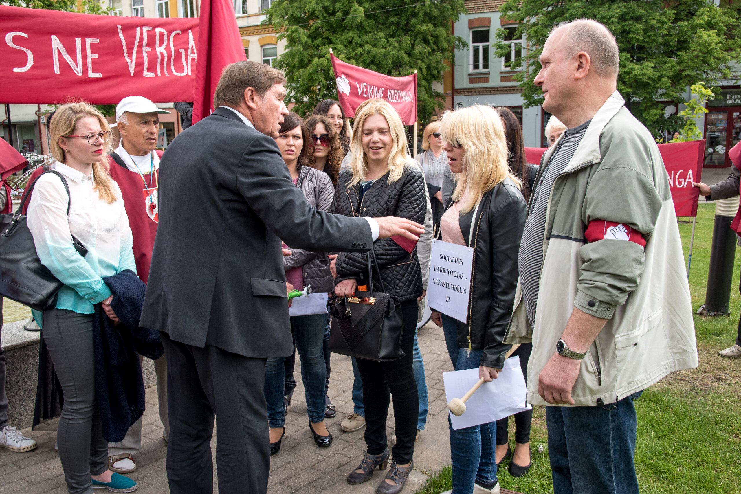„Nepykime ant tų, kurie nėjo kartu. Gal žmonės bijo spaudimo. Tačiau kiti tikri šaunuoliai – panevėžiečiai taps savo darbo teisių gynimo pionieriai. Galiu patikinti, kad, priėmus naują Darbo kodeksą, tokių reiškinių bus gerokai daugiau ir mes išmoksime apsiginti nuo darbdavių savivalės. Su šiais socialiniais darbuotojais rengiamės rimtam streikui, renkami balsai jam organizuoti. Jeigu niekas nepasikeis, eisime toliau“, – grasino mitinguotojų vedlys.