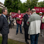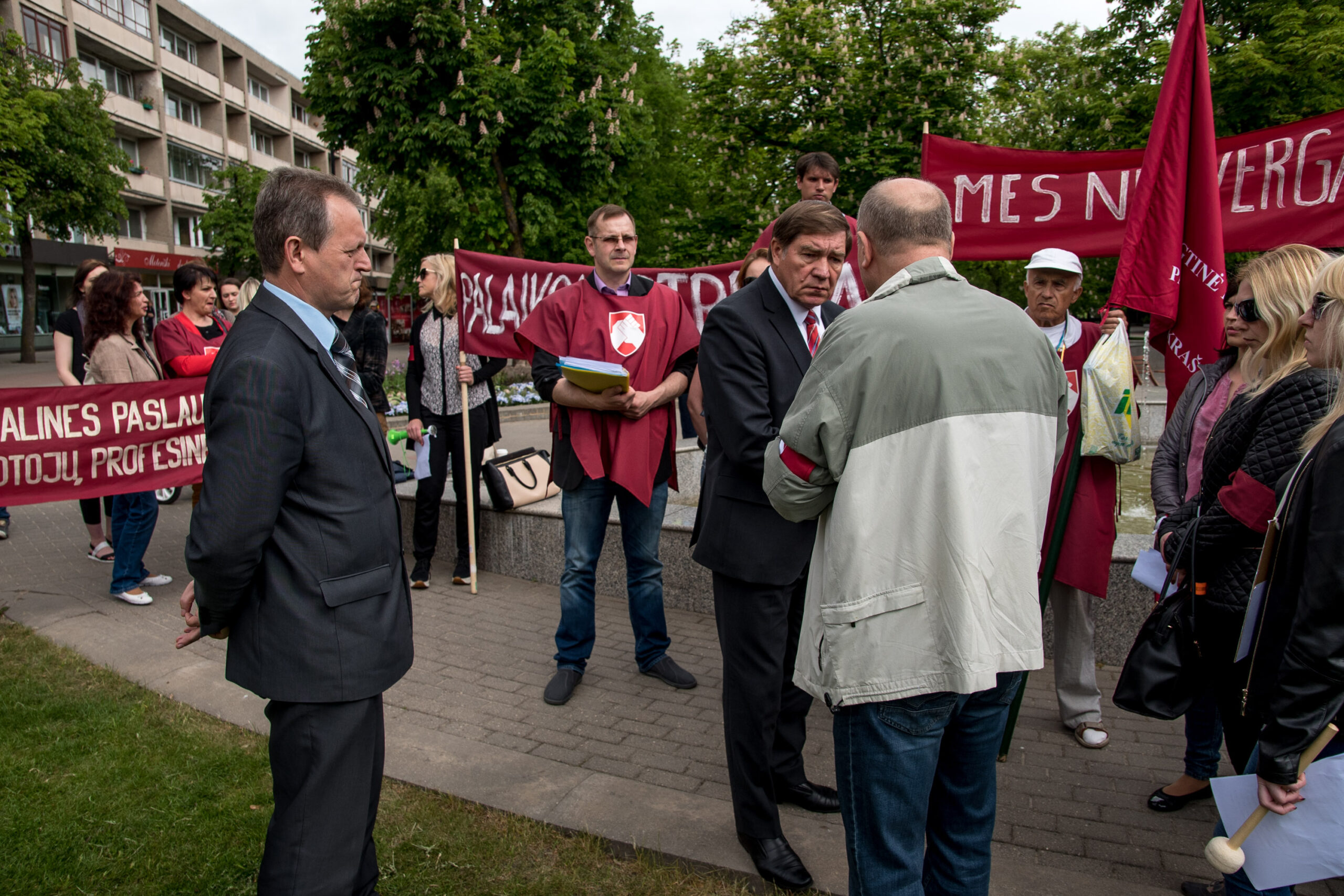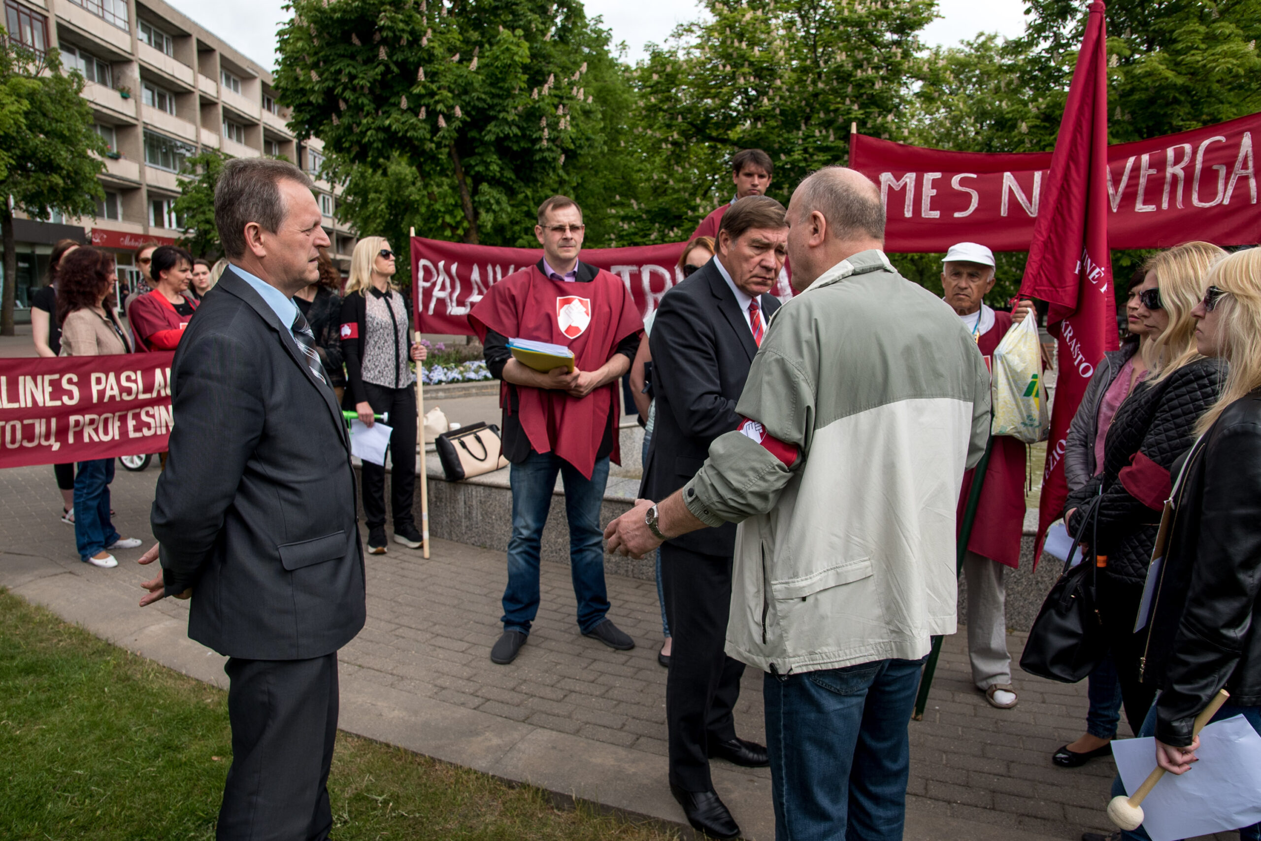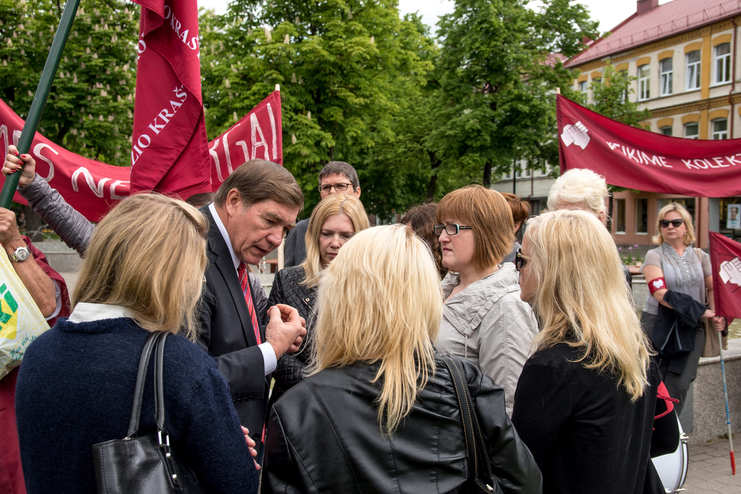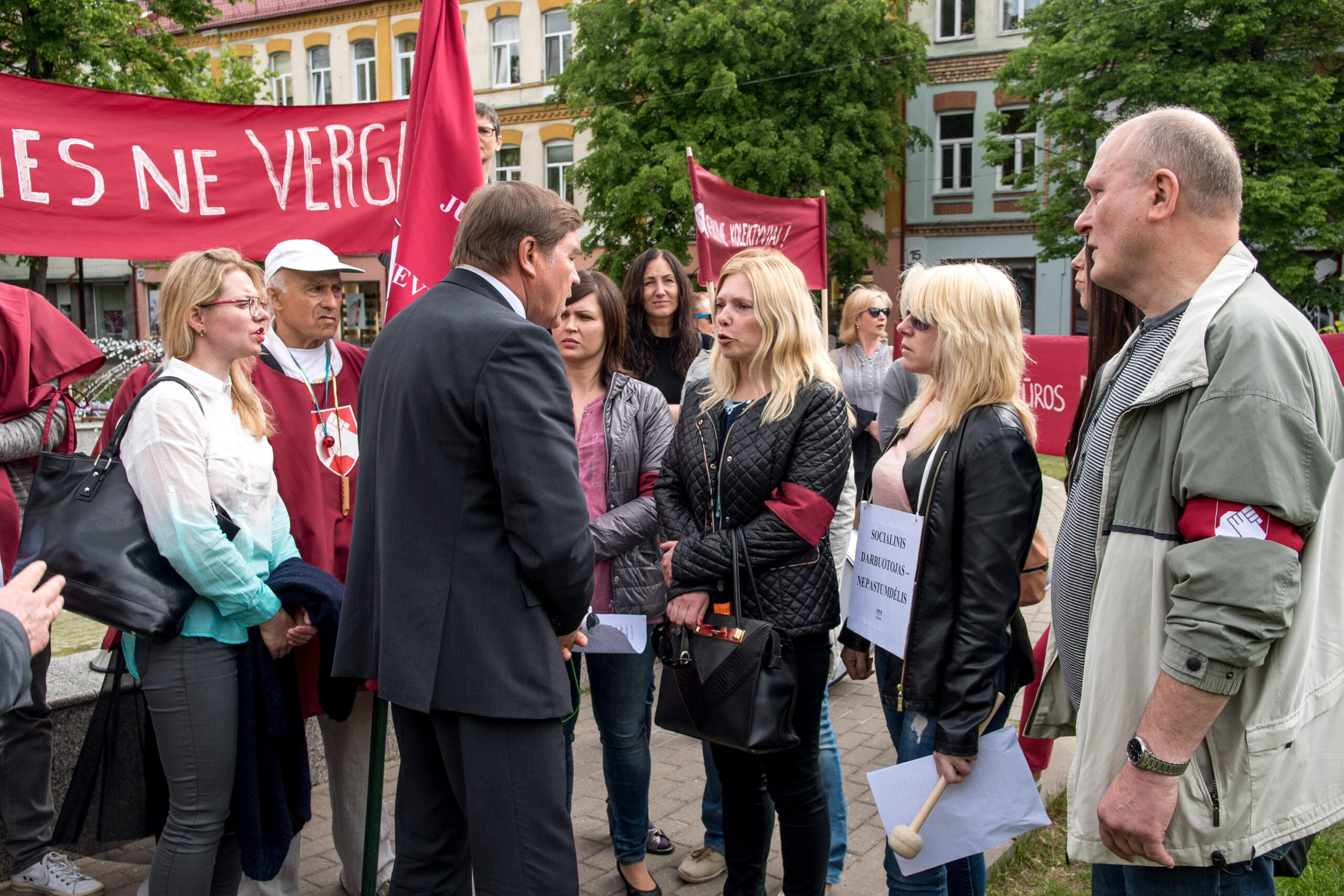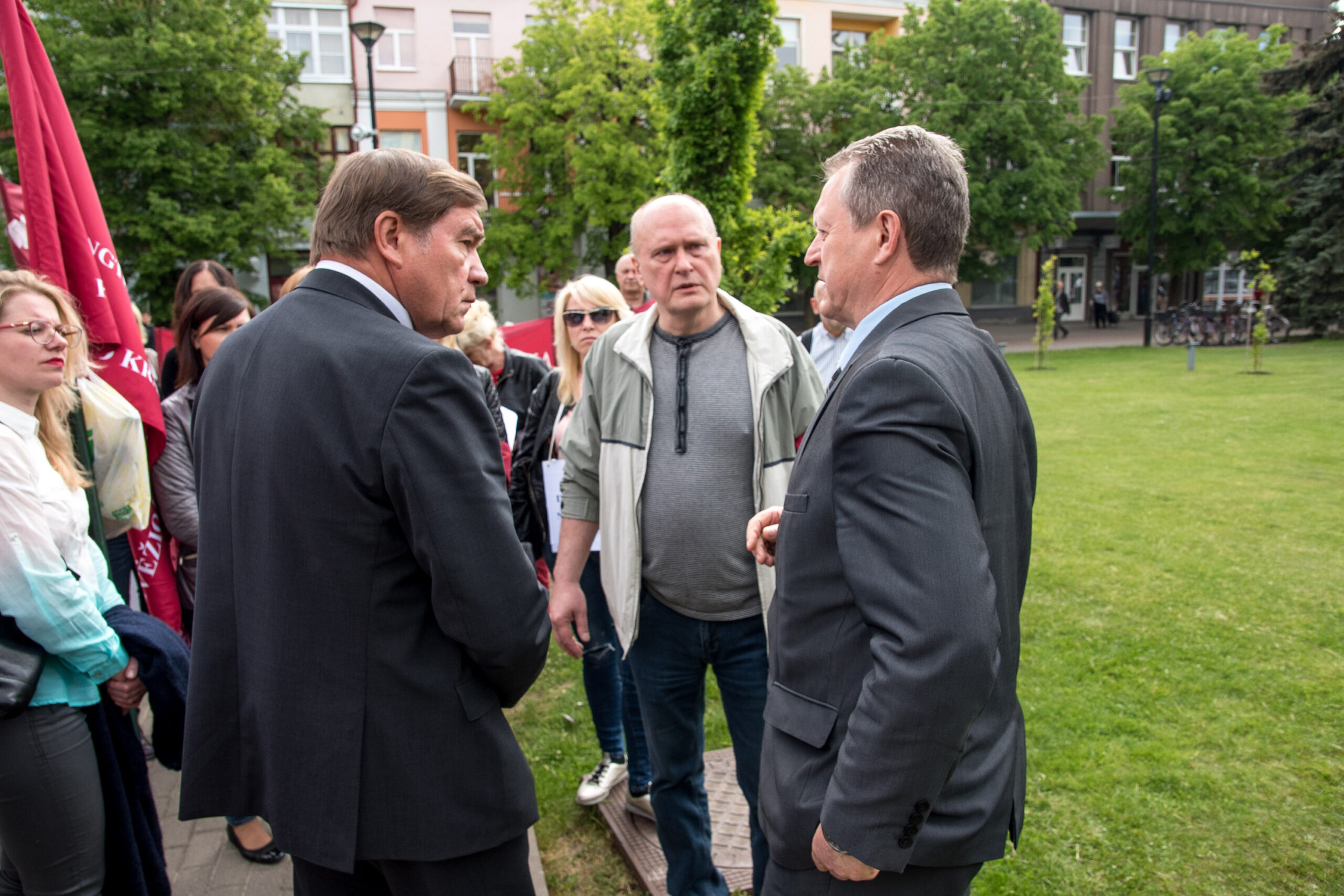 Pasikalbėti su streikuotojais iš Savivaldybės išėjo Socialinių reikalų skyriaus vedėjas Viktoras Michailovas ir mero pavaduotojas Petras Luomanas. Meras tądien buvo komandiruotėje.