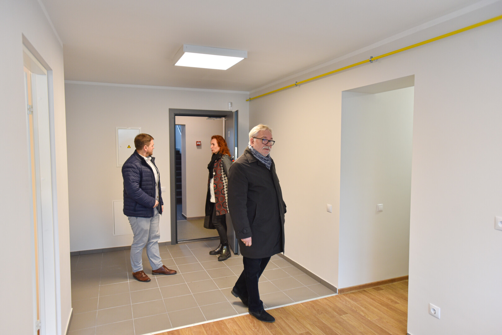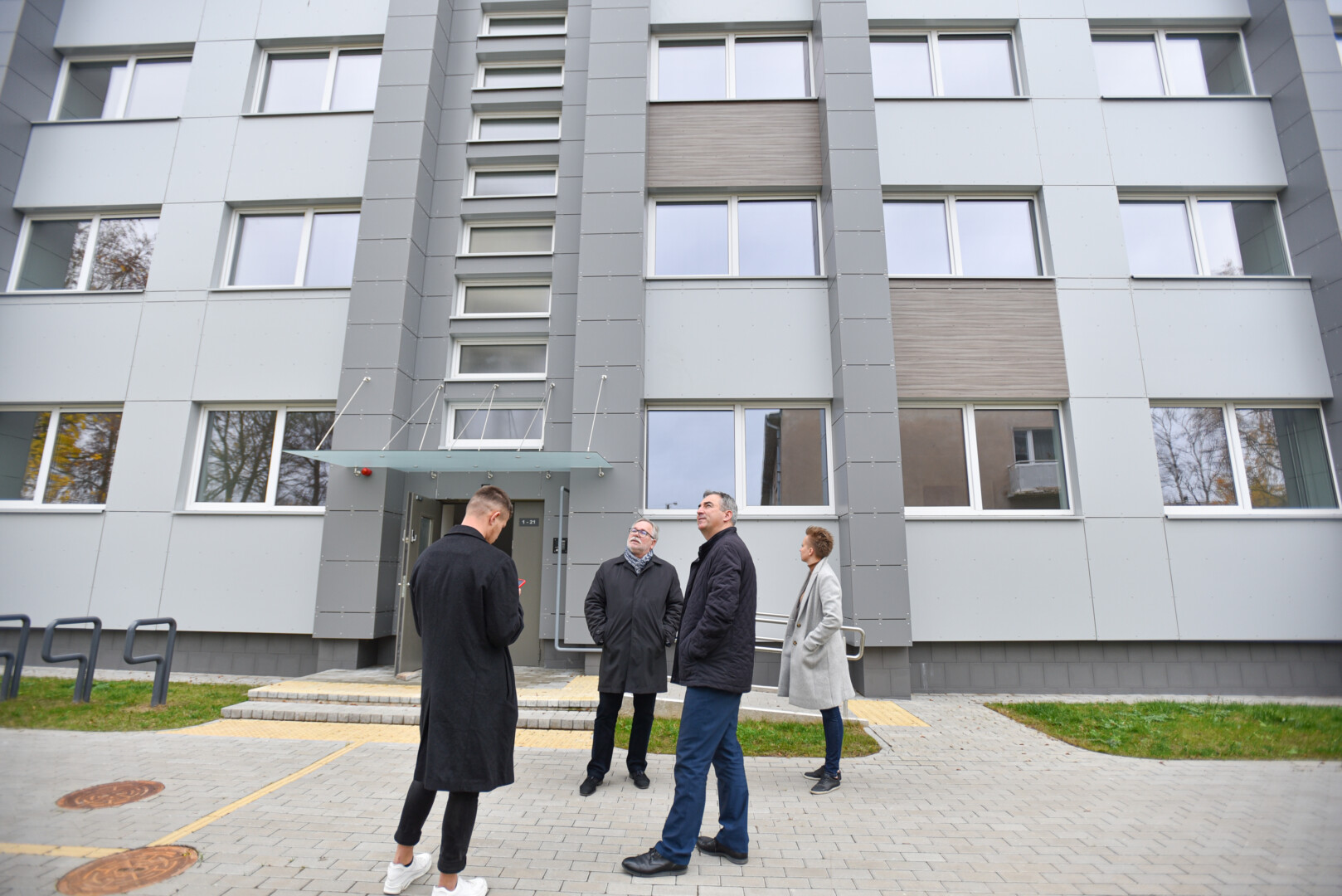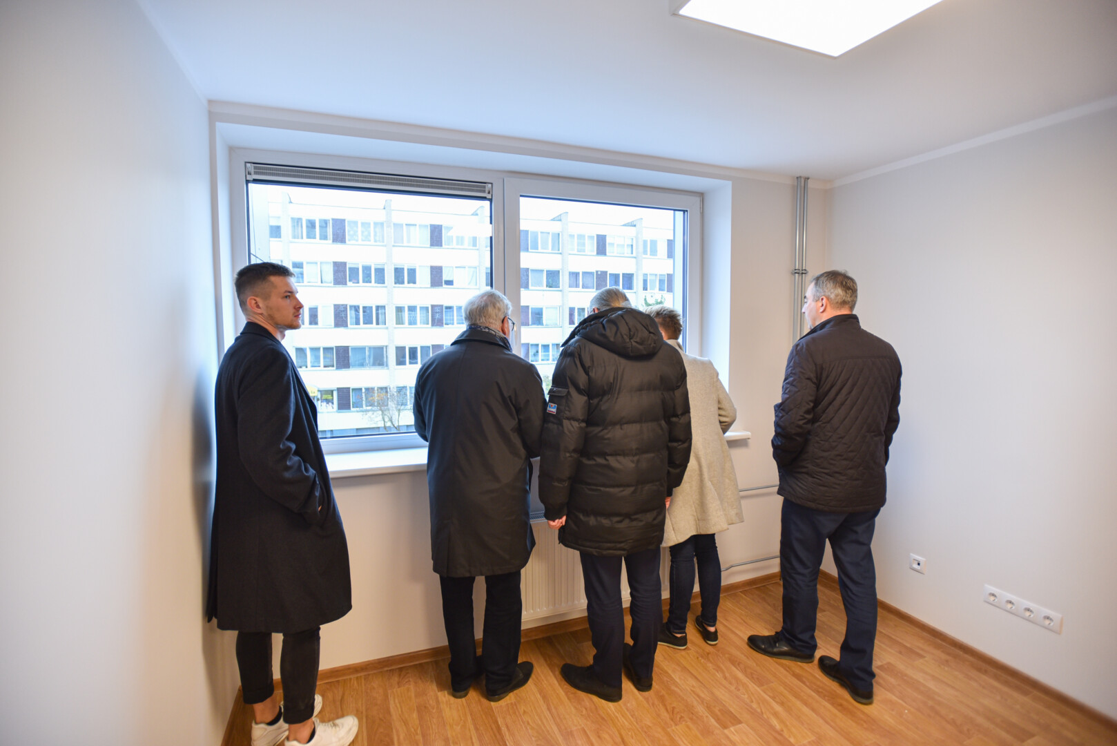 Šiandien Panevėžio miesto savivaldybės vadovai apsilankė neseniai baigtame įgyvendinti objekte – socialinių būstų daugiabutyje Aldonos gatvėje.