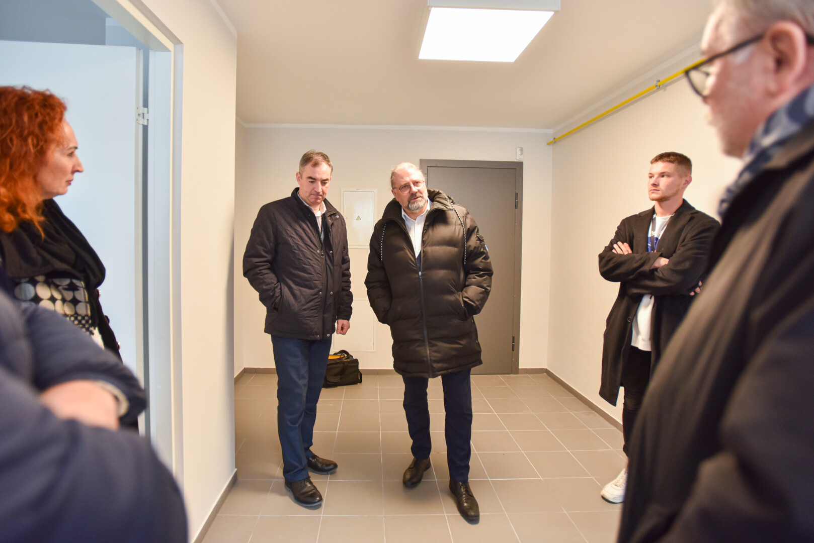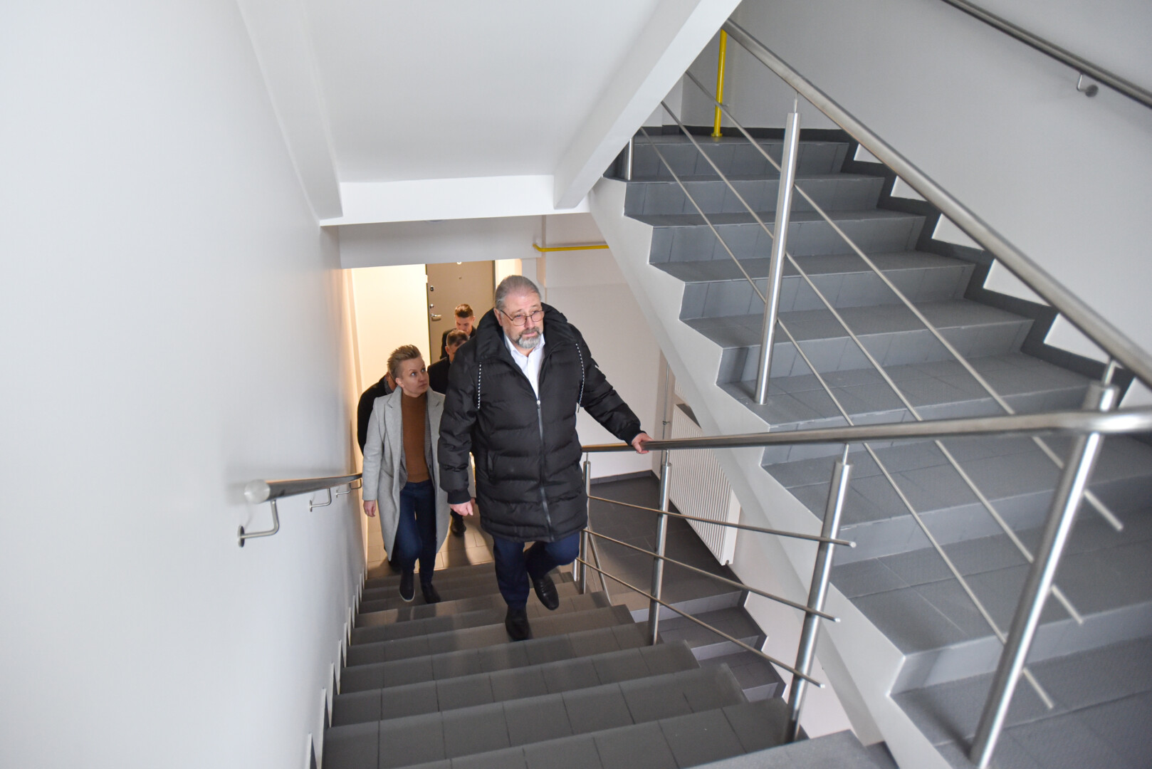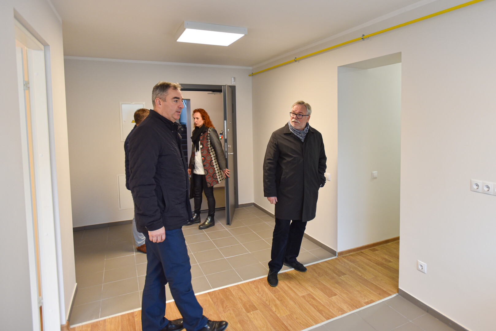 Šiandien Panevėžio miesto savivaldybės vadovai apsilankė neseniai baigtame įgyvendinti objekte – socialinių būstų daugiabutyje Aldonos gatvėje.