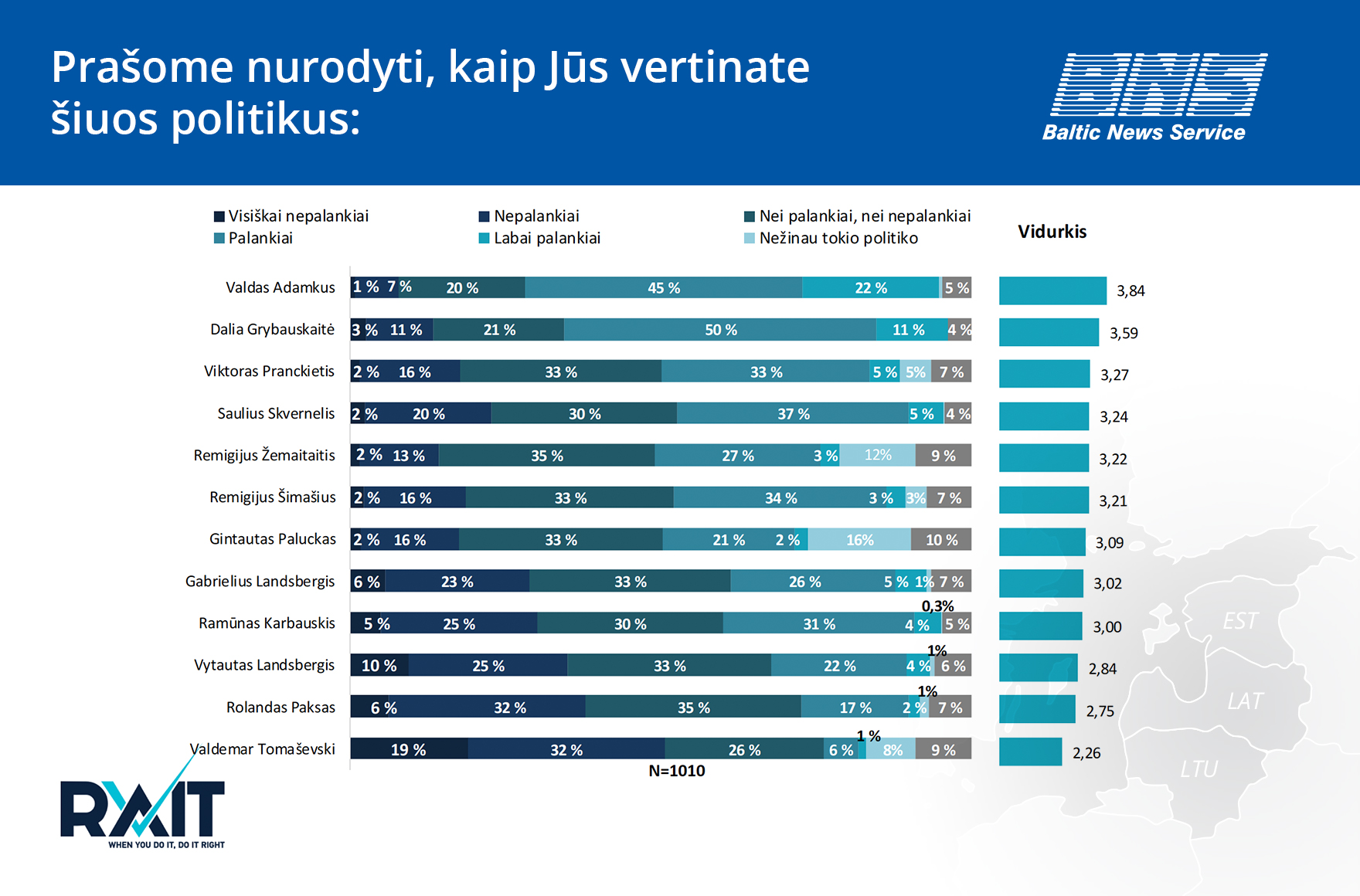 Birželio 9 – liepos 2 dienomis apklausta 1010 gyventojų nuo 15 iki 74 metų. Rezultatų paklaida siekia 3,1 proc.