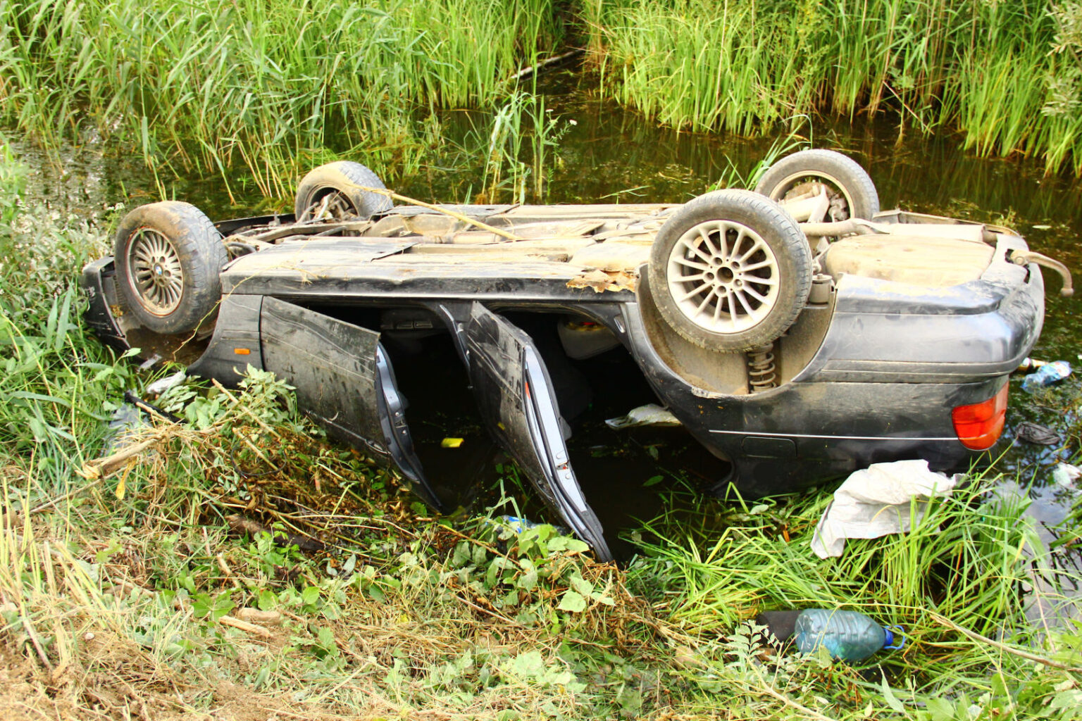 Į kolektyvinių sodų bendriją ketvirtadienio vakarą BMW automobiliu važiavusi jaunuolių kompanija kelionę baigė ratais į viršų griovyje.