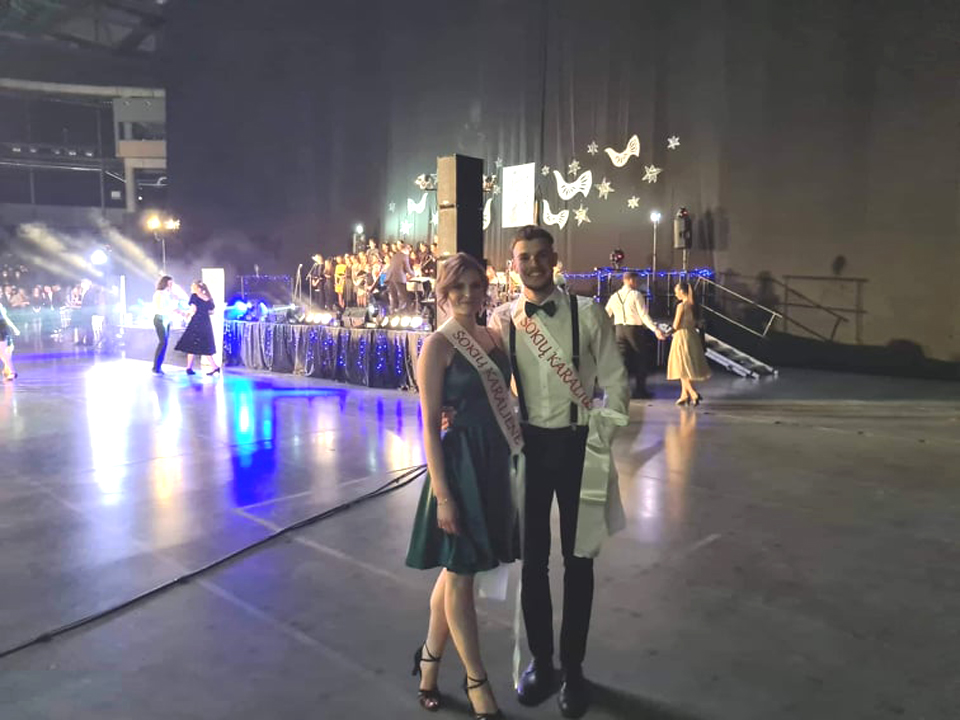 Juozo Balčikonio gimnazijos tradicinėje elegancijos ir grožio šventėje, šokių vakare „Sidabrinė naktis“ karaliaus ir karalienės titulus pelniusi abiturientų Vakarės Sidaravičiūtės ir Nedo Zavackio pora aistra ir gera nuotaika užkrėtė visus tą vakarą arenoje leidusius žiūrovus.