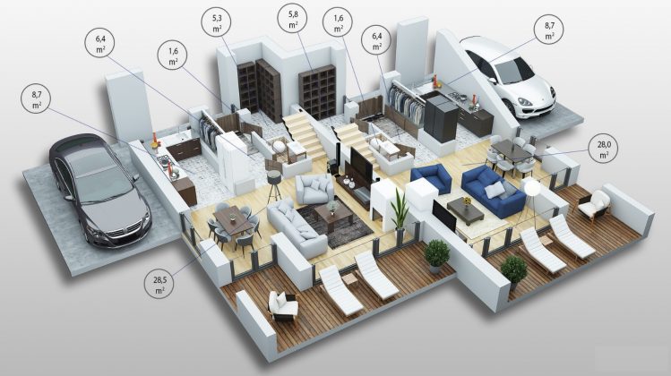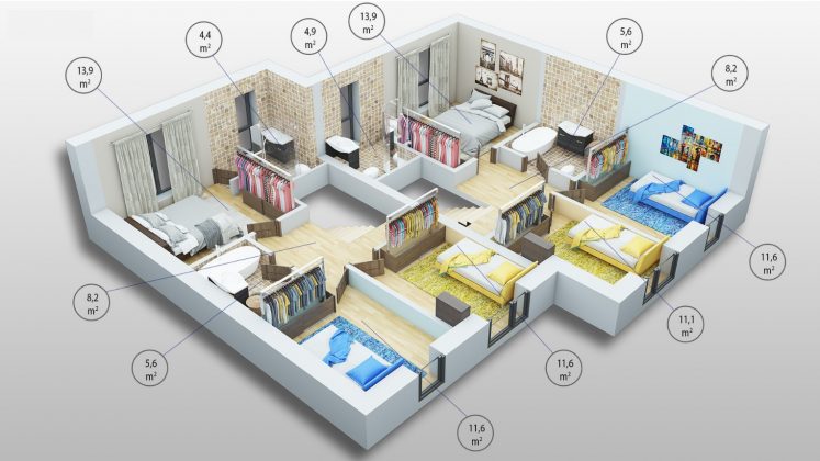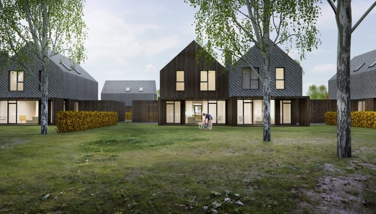 Vienbučiai namai – 118 m2; sublokuoti dvibučiai namai – 105 m2. Sklypai, kuriuose statomi dvibučiai ir vienbučiai, – nuo 7,36 iki 15,42 a.