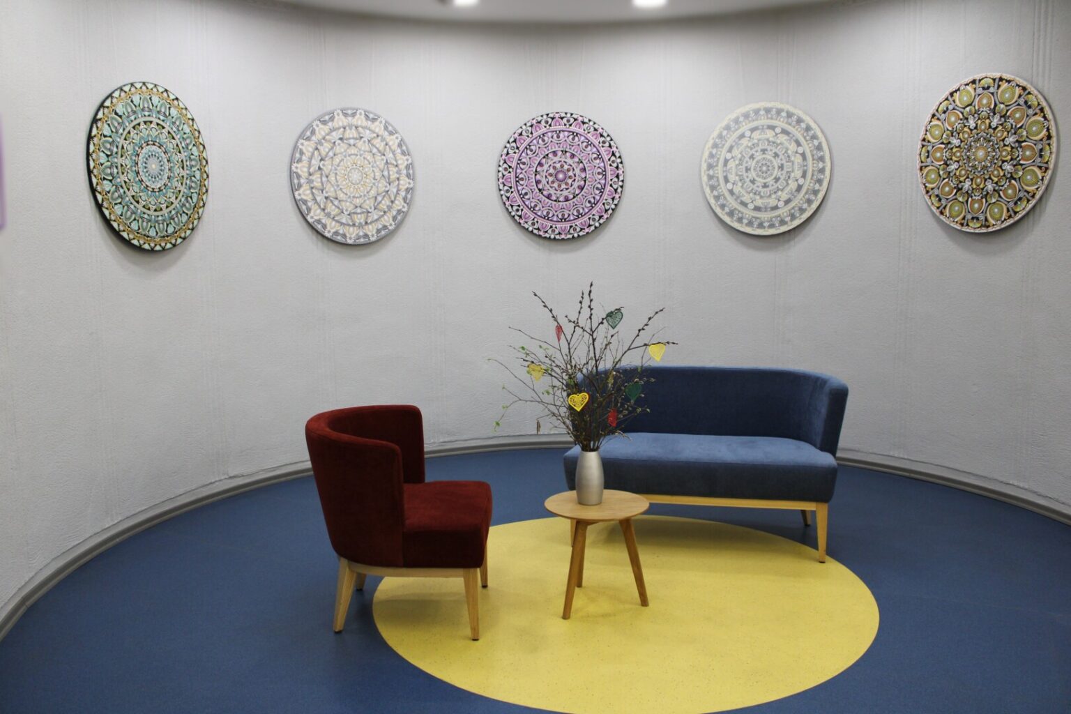 Panevėžio Elenos Mezginaitės viešojoje bibliotekoje lankytojus kviečia unikali Kamilės Adomaitytės mandalų paroda, kurioje susilieja spalvos, simetrija ir vidinė ramybė.